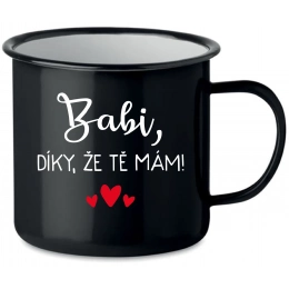 Smaltovaný Plecháčik pre Chvíle Pohody - S Úsmevom a Teplom V našom rýchlom svete je dôležité nájsť si chvíľku pokoja a pohody. Naša nová kolekcia smaltovaných plecháčikov je ako stvorená práve pre tieto momenty. Každý plecháčik je vyrobený s láskou a starostlivosťou, aby sprevádzal vaše chvíle odpočinku, či už si vychutnávate šálku voňavej kávy, lahodného čaju alebo teplého kakaa. S objemom 350 ml sú tieto tradičné smaltované hrnčeky perfektnými spoločníkmi na každý deň. A čo je na nich najlepšie? Každý z nich nesie vtipný motív: BABI, VĎAKA, ŽE ŤA MÁM!, Ktorý rozjasní váš deň a prinesie úsmev na tvár. Tieto hrnčeky sú ako malé pohladenie pre dušu - ideálne pre chvíle, kedy ste sami sebou, alebo pre tie nezabudnuteľné okamihy strávené s vašimi najbližšími. Zabudnite na chvíľu na všetky starosti a užite si pokojný moment s naším smaltovaným plecháčikom. Objednajte si ho teraz a pripravte sa na maximálny pôžitok z každého dúška! Odporúčame ručné umývanie tohto produktu na zachovanie jeho kvality a trvanlivosti. Neodporúčame umiestňovať do umývačky riadu.