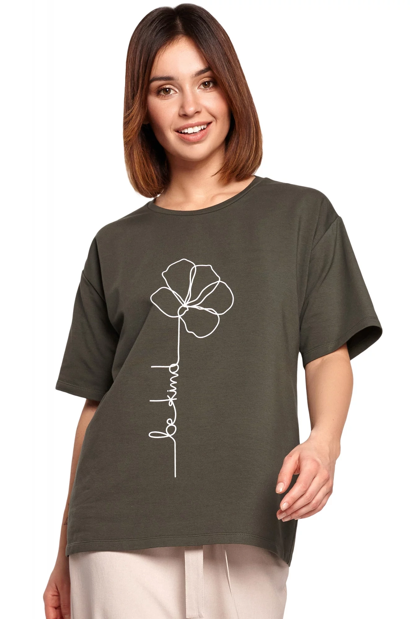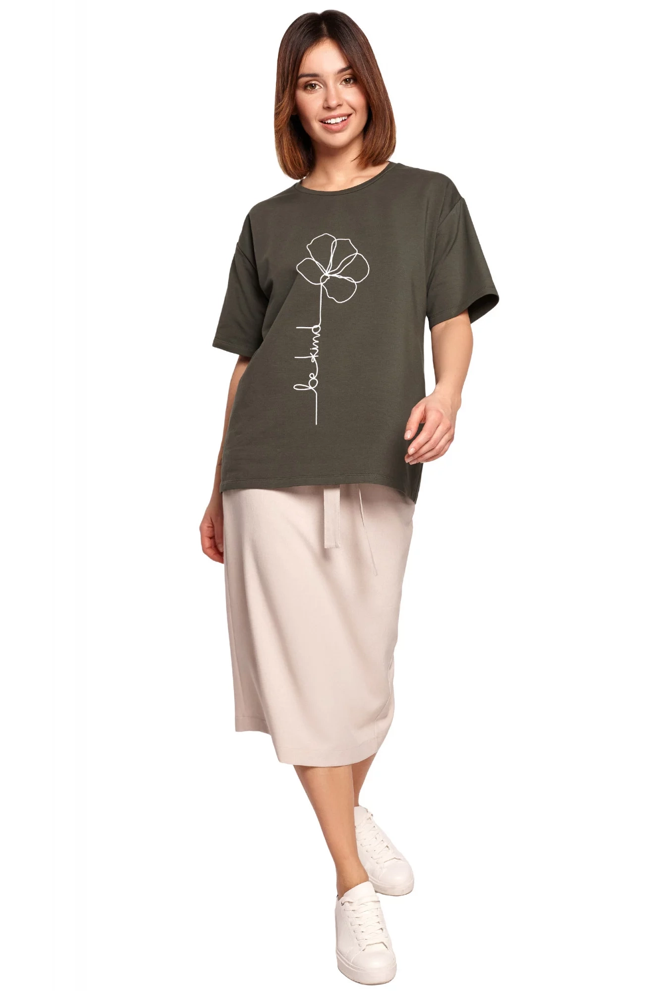 Uvoľnené tričko s krátkym rukávom a jednoduchým klasickým strihom je skvelou voľbou na každodenné nosenie. Vďaka pútavej potlači "be kind" budete vyčnievať z davu.