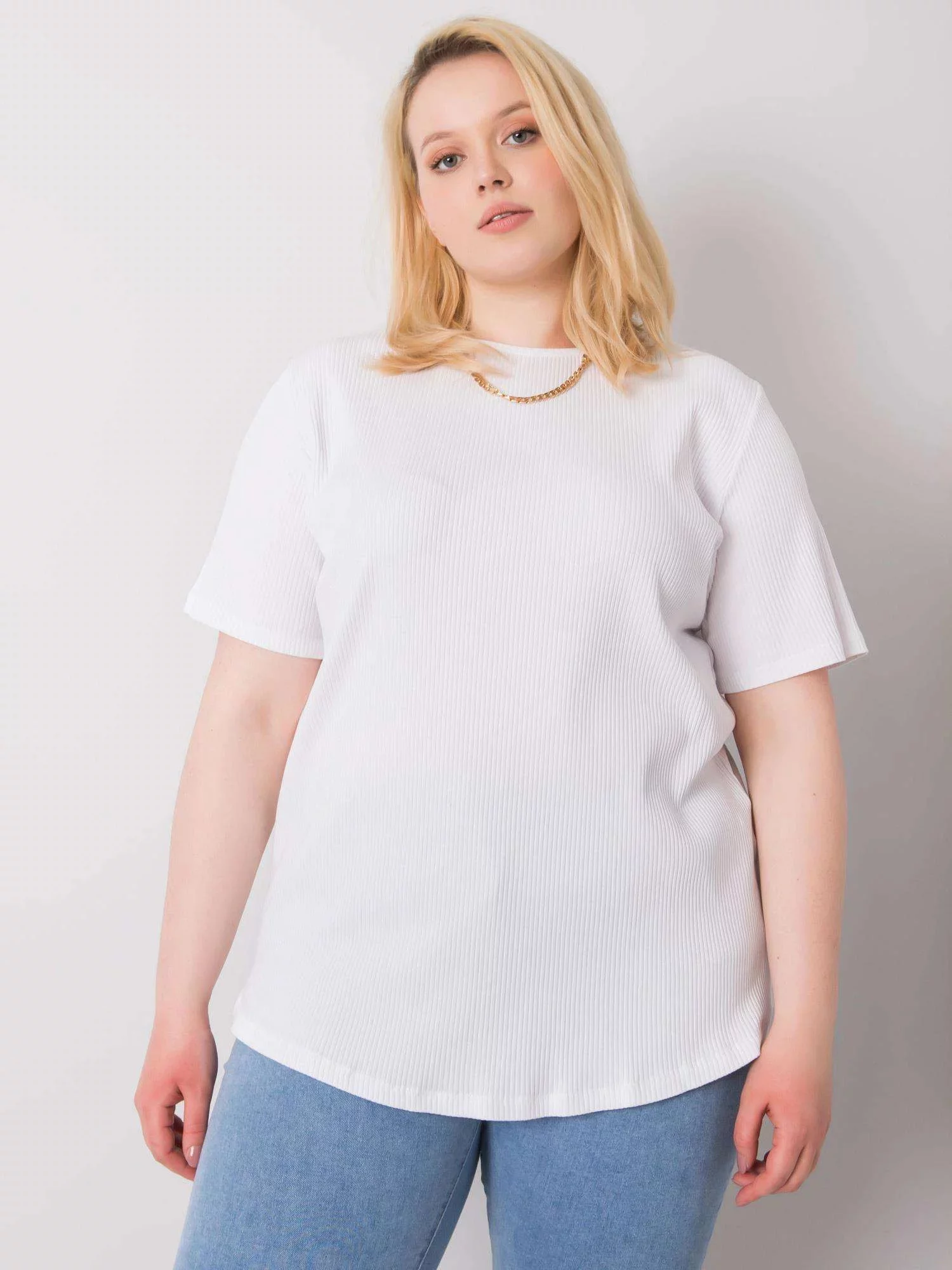 Biela, nadmerná veľkosť, pruhovaná blúzka .