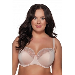 Gładki, elegancki biustonosz z miseczkami półusztywnianymi, miseczki wyścielone od spodu przyjemną dla ciała pianką unoszą i podtrzymują biust, zgrabnie kształtując go w dekolcie. Zdobiąca górne partie miseczek stabilna kwiatowa koronka zalotnie okrywa szczyty piersi, pozostawiając to, co ukryte wyobraźni. Dopracowana konstrukcja pozwala na stabilne utrzymanie biustonosza we właściwym miejscu, a szeroki obwód i ramiączka dbają o najwyższy komfort.