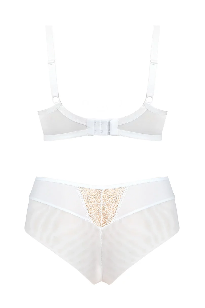 Model je vhodný pre ženy s menším poprsím, pretože krásne nadnáša, zväčšuje a zvýrazňuje poprsie. Košíčky majú béžovú farbu a ich spodnú časť pokrýva biela čipka. Vrchnú časť košíčkov tvorí sieťovina s malými bodkami. Obvod je ušitý z bieleho mikrovlákna. Dekolt zdobí ozdoba v tvare kolieska. Čipka a doplnky sú vyrobené z veľmi kvalitných francúzskych materiálov. Ramienka je možné nastaviť, ale nemožno ich odopnúť.