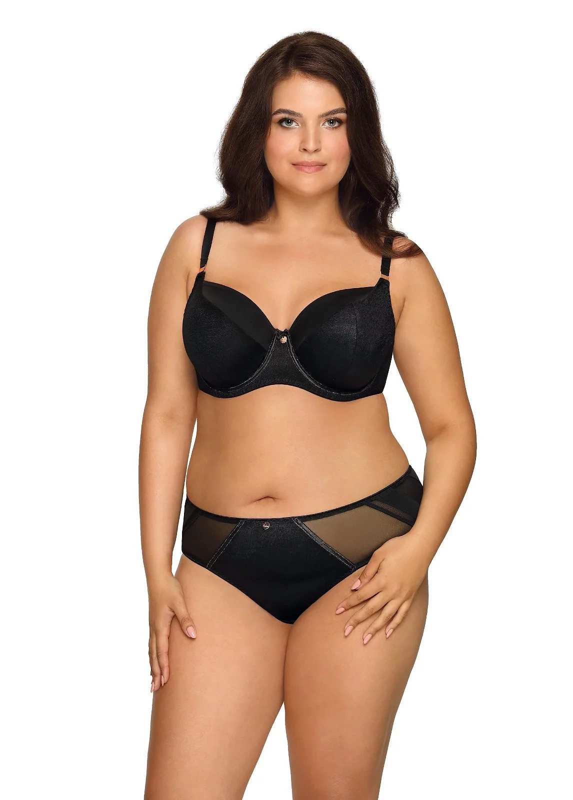 V hornej línii modelu je tylová sieťovina. Ramienka nie je možné odopnúť. Šírka ramienok závisí od veľkosti a rozmeru podprsenky. Boky modelu sú transparentné. Podprsenka má strih a konštrukciu typu - 1261.