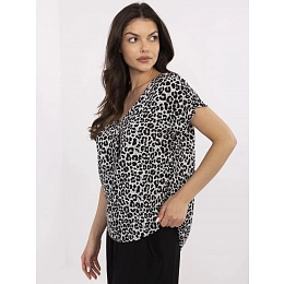 Dámska voľná viskózová blúzka s krátkym rukávom, výstrih do V, animal potlač.