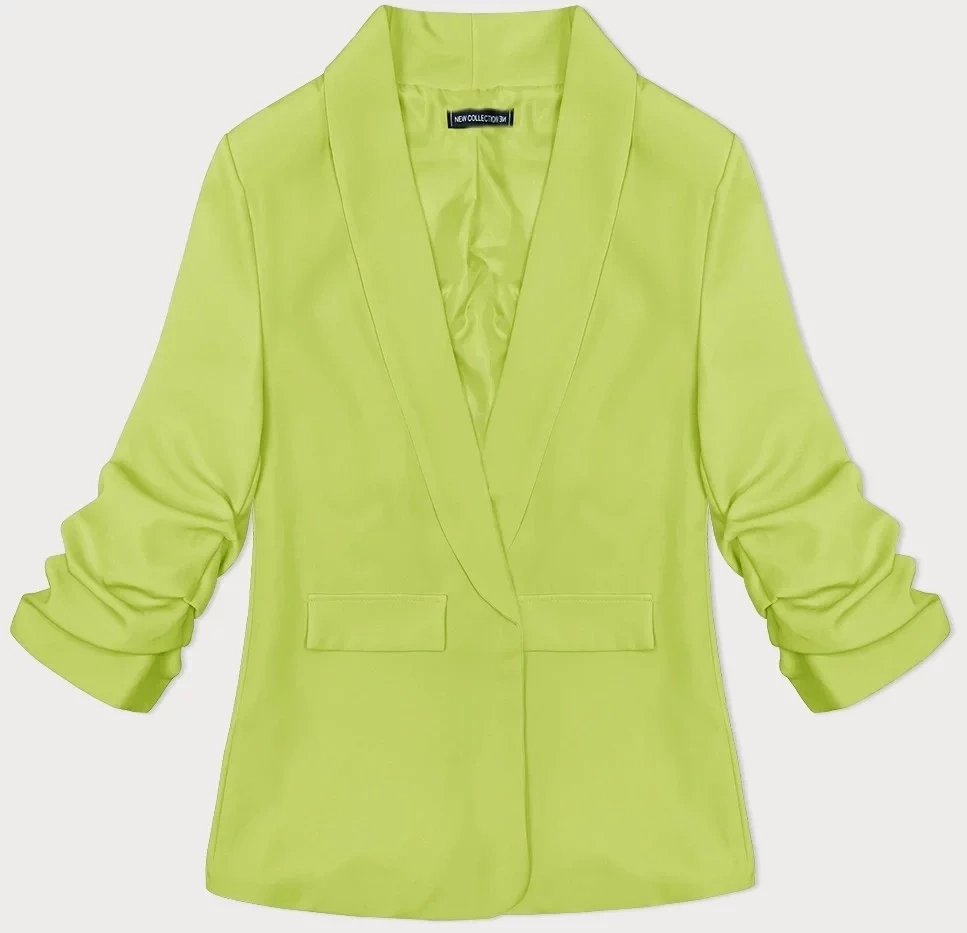 Sako má klopy a má podšívku. Nariasené rukávy majú 3/4 dĺžku. Dĺžka modelu siaha k bokom.
