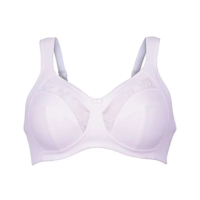 Pohodlná, mäkká podprsenka bez kostíc značky Anita. Vyrobená z "priedušného", pre telo príjemného mikrovlákna, zdobeného kvetinovou výšivkou na tyle. Trojdielna konštrukcia košíčkov s bočnými lištami dokonale tvaruje poprsie. Široké, mäkko podšité ramenné popruhy zmierňujú tlak na ramená a krk. Zaisťuje najvyšší komfort nosenia v kombinácii s dokonalou podporou aj veľkých pŕs.