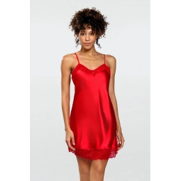 Neobyčajne žensky pôsobiaca dámska nočná košieľka, ktorá je vyrobená z jemného saténu.