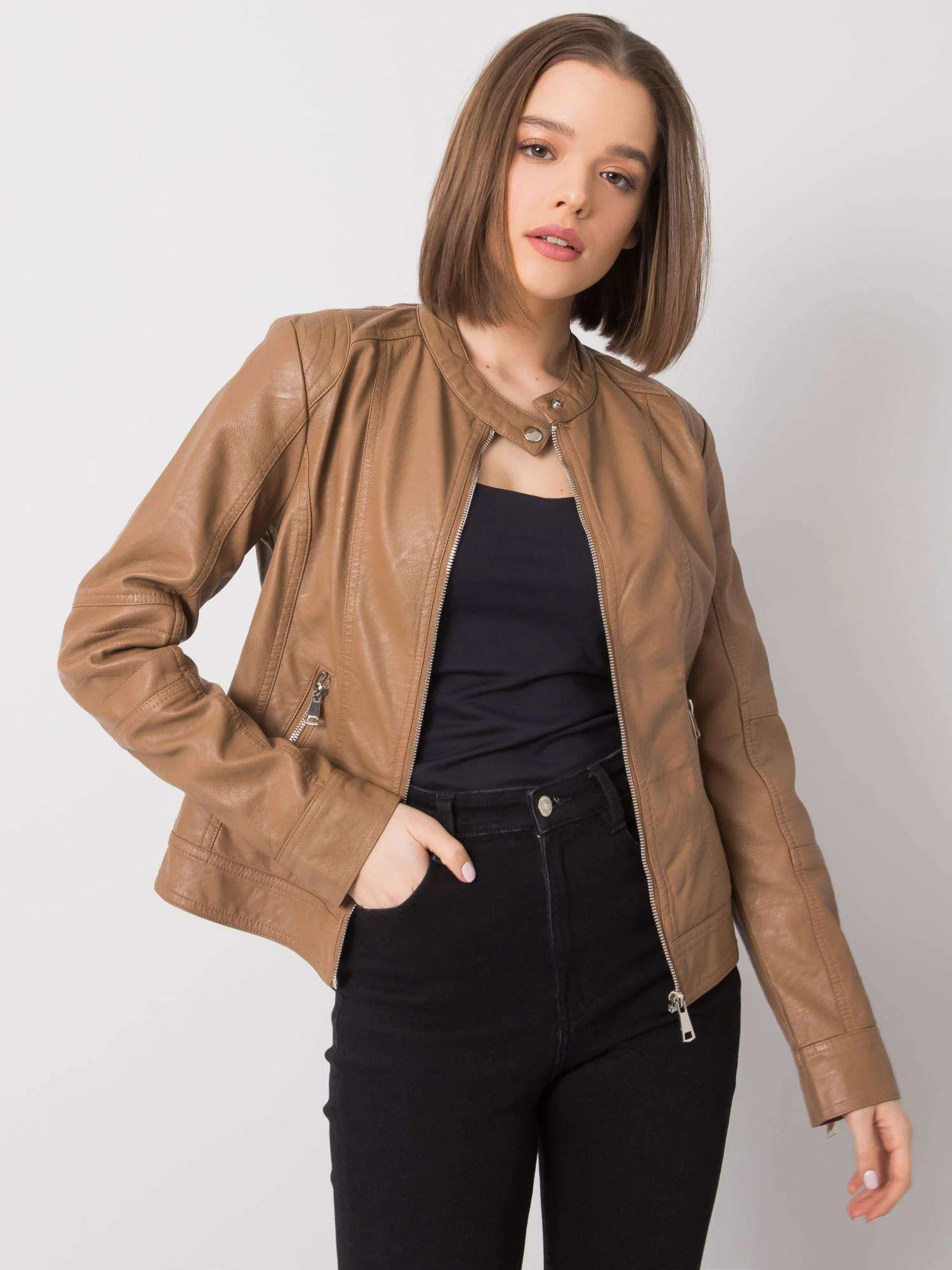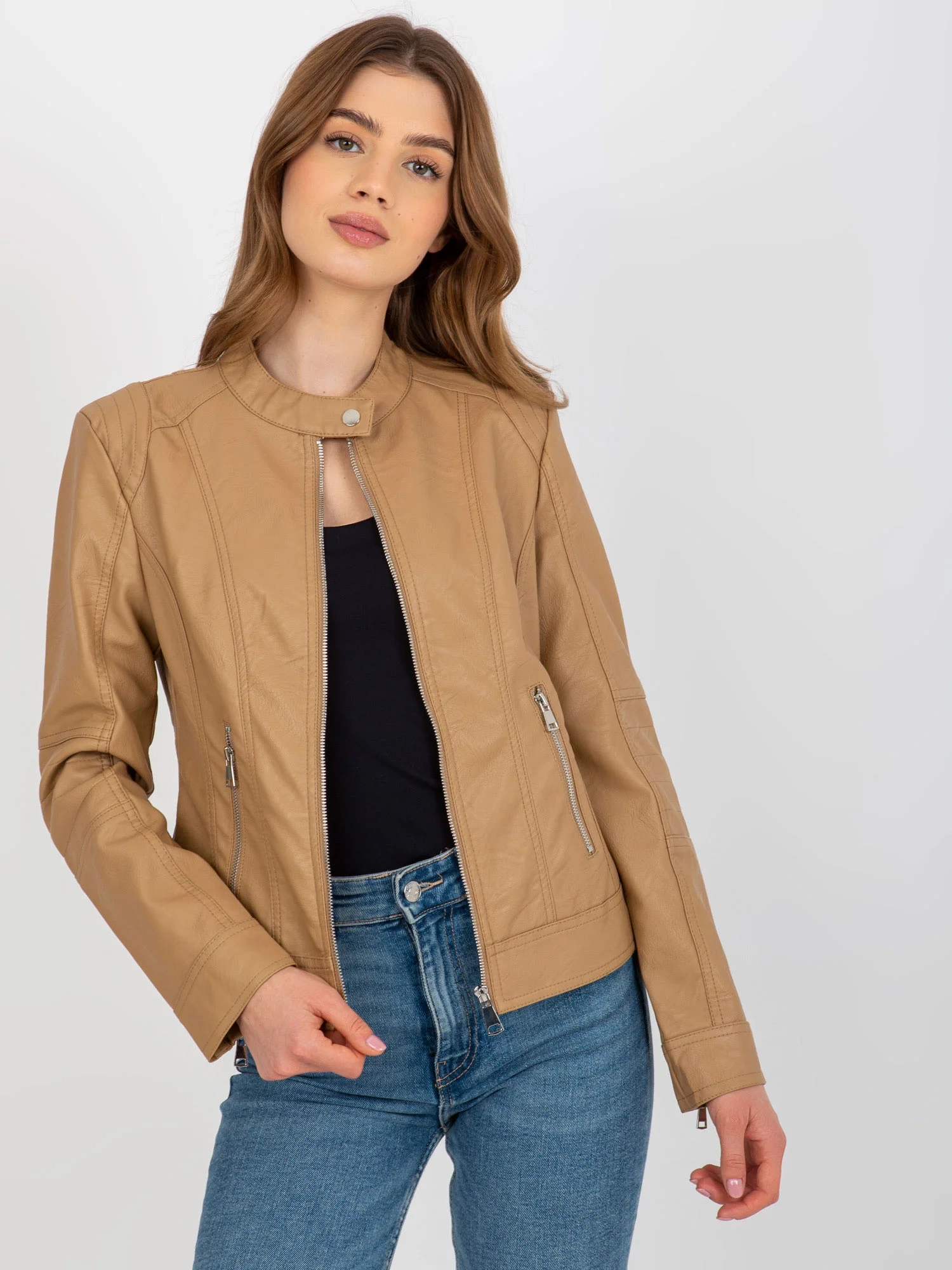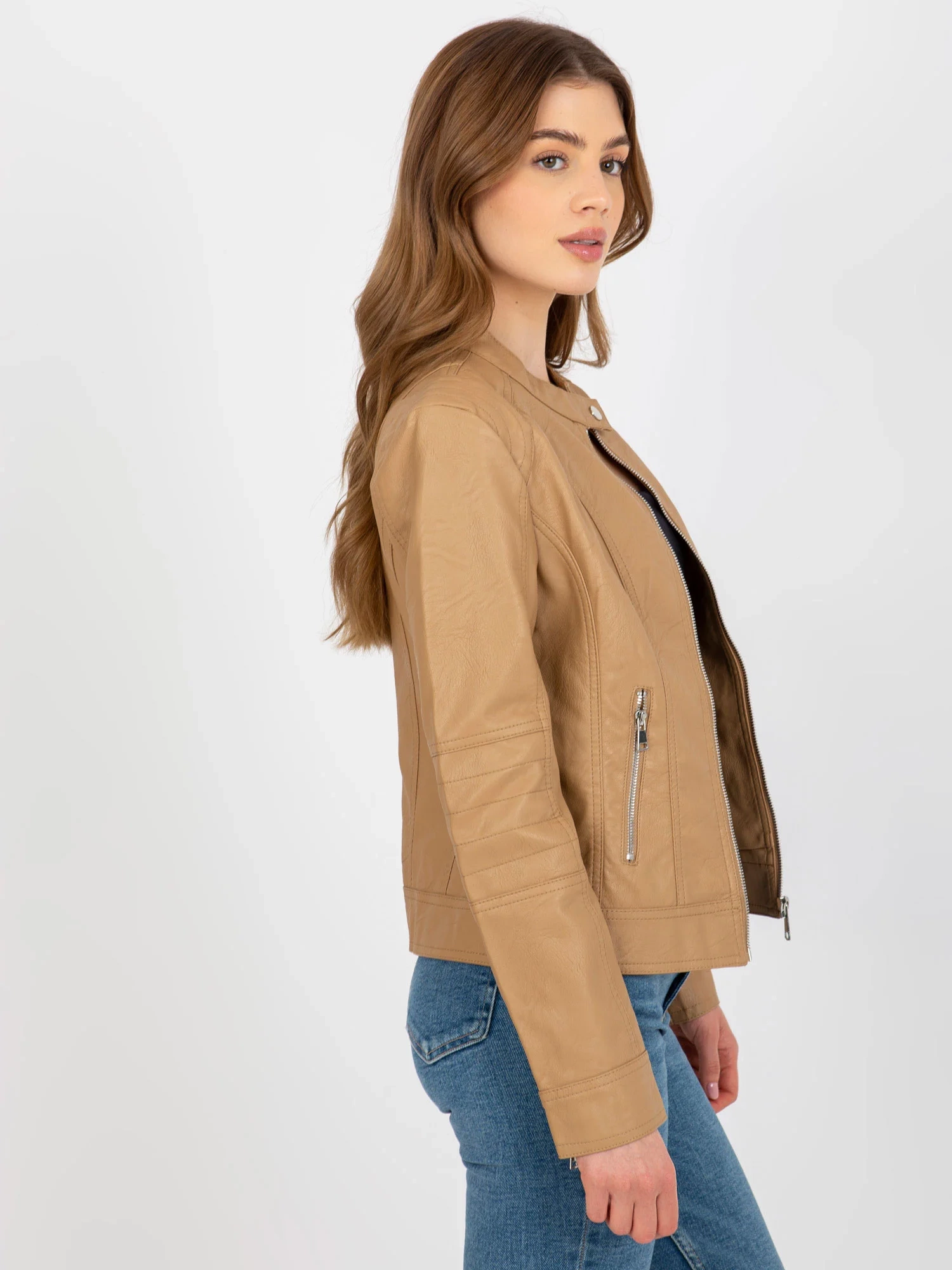 Svetlá zamatová bunda z ekokože s vreckami od Eulalie.