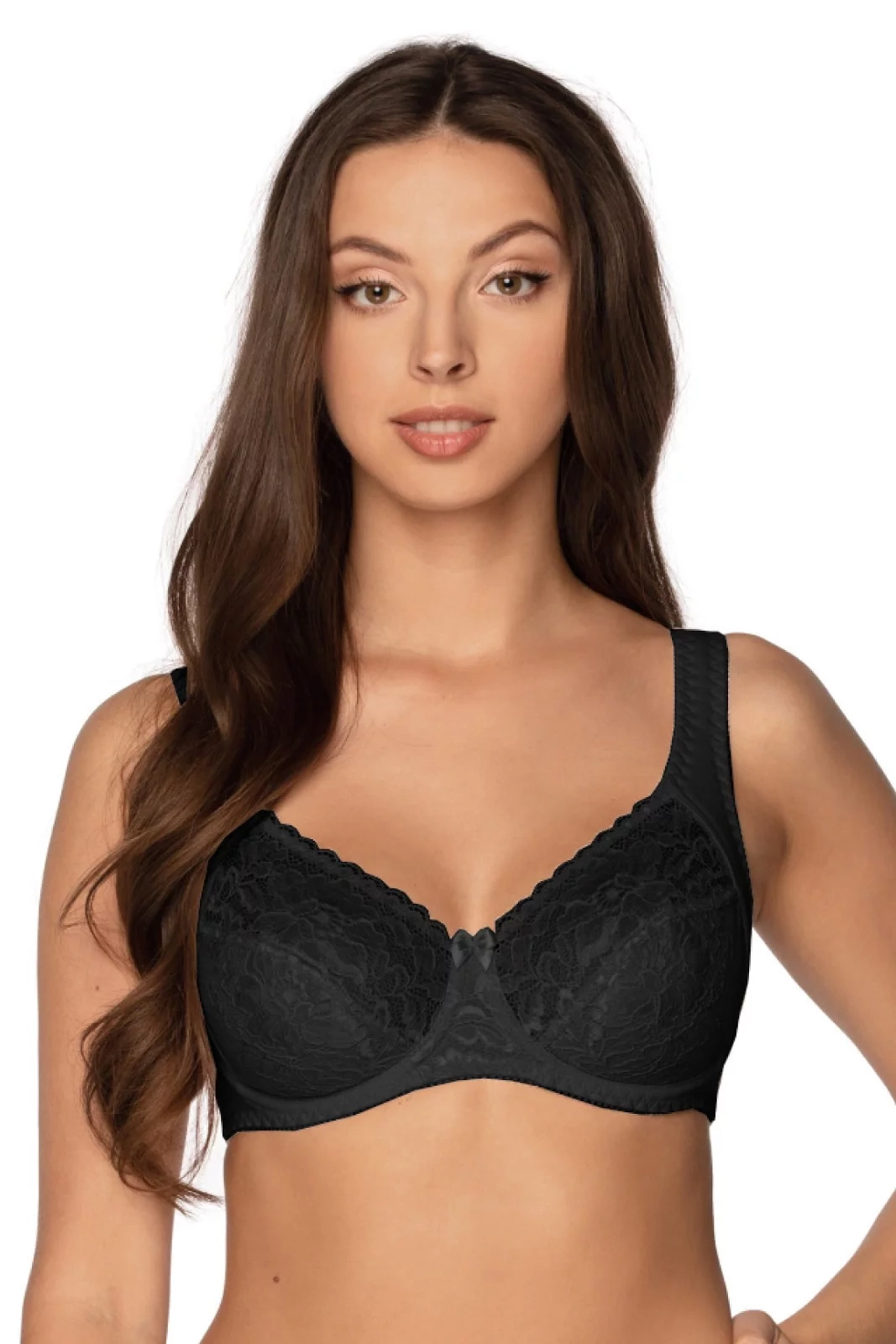 Spodná časť košíčkov je podšitá materiálom. Vrchnú časť košíčkov lemuje ažúrová čipka. Model má bočný pás, ktorý pekne sťahuje poprsie k stredu hrudníka. Podprsenka sa zapína dvoma, alebo tromi háčikmi s trojou možnosťou nastavenia dĺžky obvodu. Model je vhodný pre ženy s väčším poprsím.