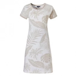 Dámska nočná košeľa bez rukávov od značky Pastunette s potlačou svetlo hnedých listov na bielom podklade.Nočná košeľa má okrúhly výstrih a dĺžku 95 centimetrov.