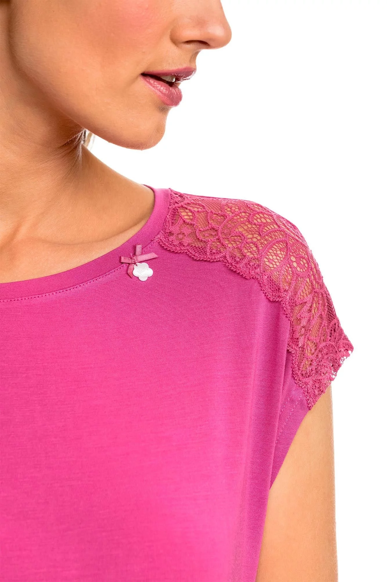 Dámska nočná košeľa pre pocit výnimočnosti a pohodlné spanie. Nočná košeľa je zdobená luxusnou čipkou na ramenách. Je vyrobená z vysoko kvalitného Micro-modalu s prímesou Elastanu. Prírodný Micro-modal poskytuje výnimočnú mäkkosť a pohodlie, je priedušný, pri praní sa nezráža, dobre absorbuje pot a rýchlo schne, zatiaľ čo Elastan dodáva odevu potrebnú pružnosť.