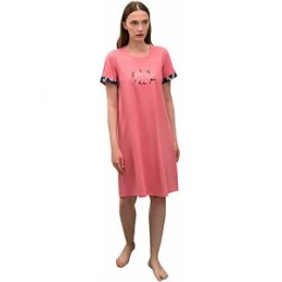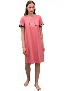 Pohodlná dámska nočná košeľa pre sladké spanie aj pre krásu.Košieľka má okrúhly výstrih a je ozdobená lemovaním na rukáve. Predná strana košieľky je ozdobená nežnou potlačou. Táto dámska košieľka je vyrobená z vysoko kvalitnej kombinácie, geneticky nemodifikovanej gréckej bavlny a elastanu. Toto spojenie zaistí vysoké pohodlie, príjemný pocit na dotyk, priedušnosť, pružnosť a odolnosť. Dĺžka nočnej košele je 95 cm.