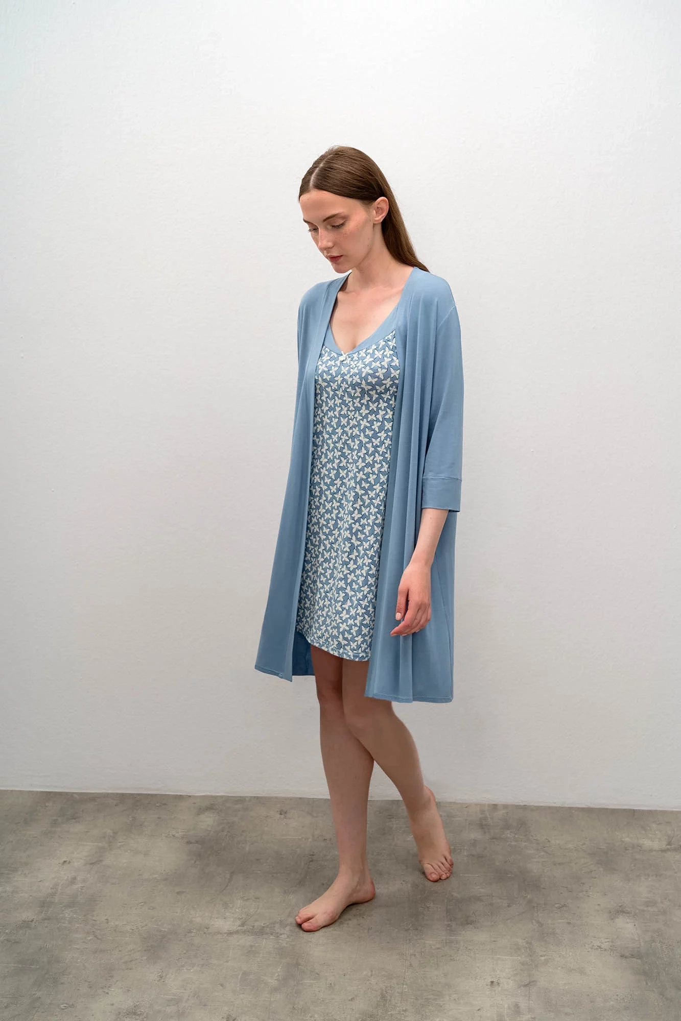 Dámska nočná košeľa na ramienka s potlačou bielych motýľov.
