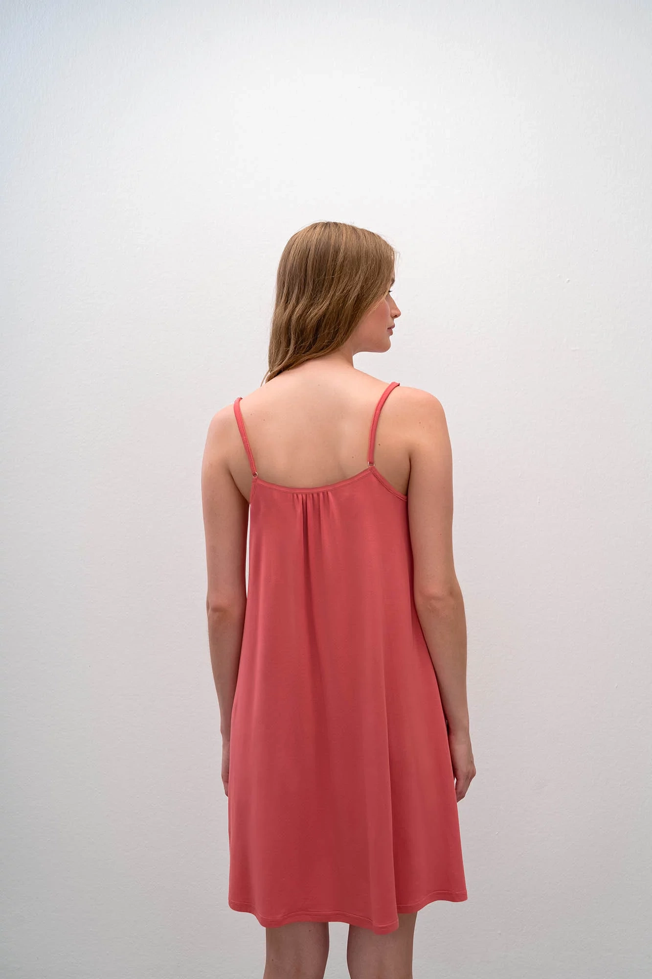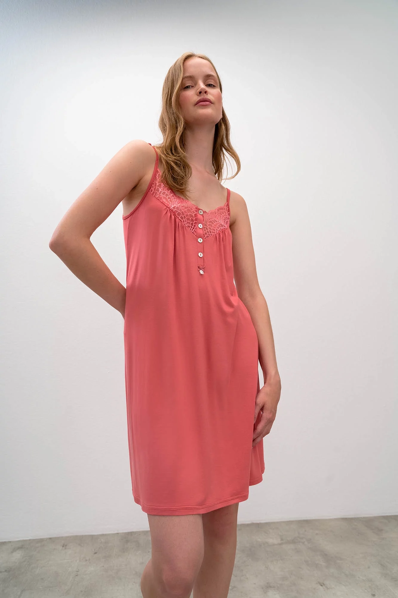 Dámska nočná košeľa na ramienka, na prednom diele čipka.