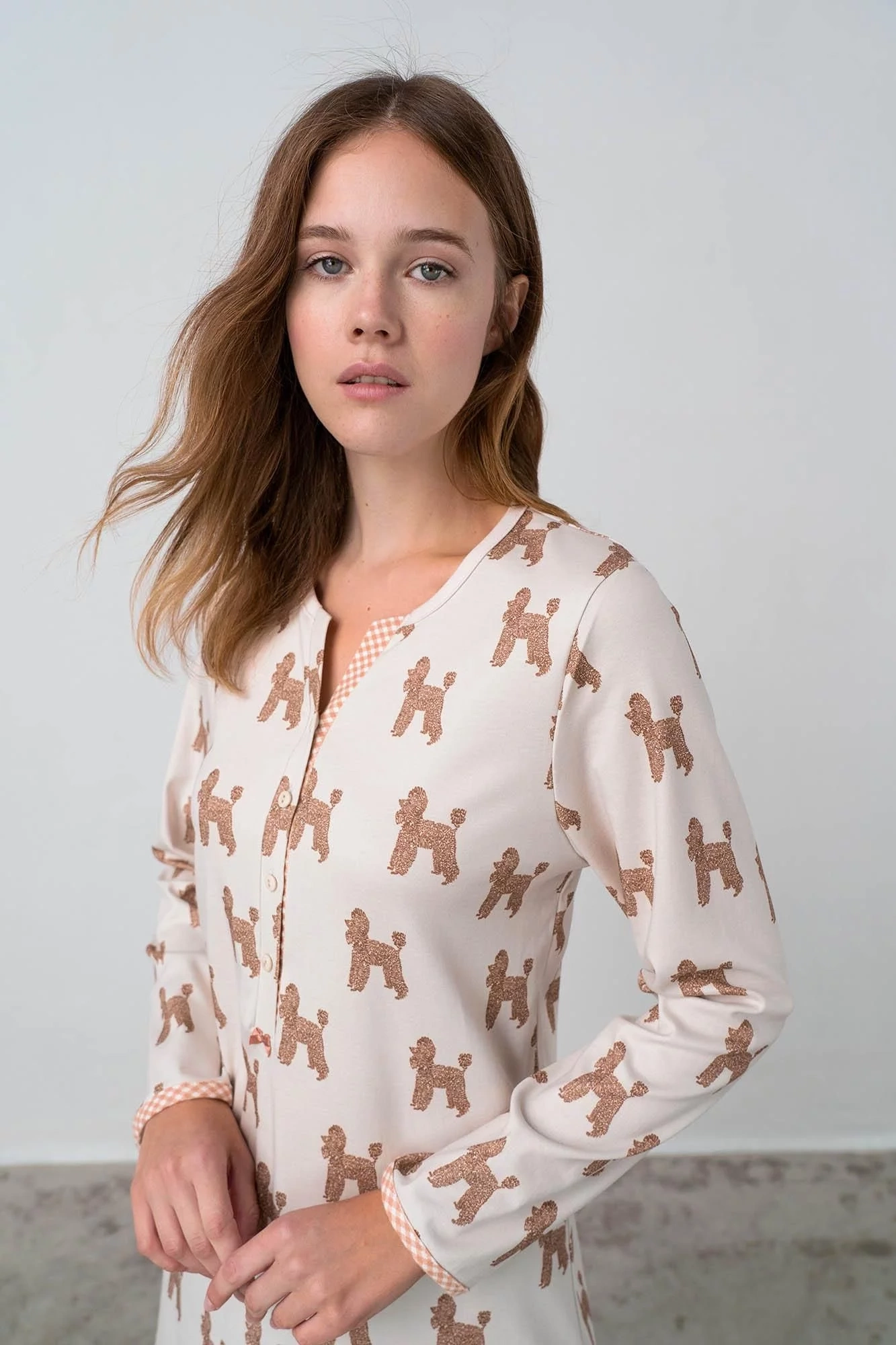 Dámska nočná košeľa Vamp- výstrih do V- dlhý rukáv- gombíky Materiálové zloženie: 100% bavlna