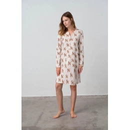 Dámská noční košile 17478 - Vamp béžová-potisk S