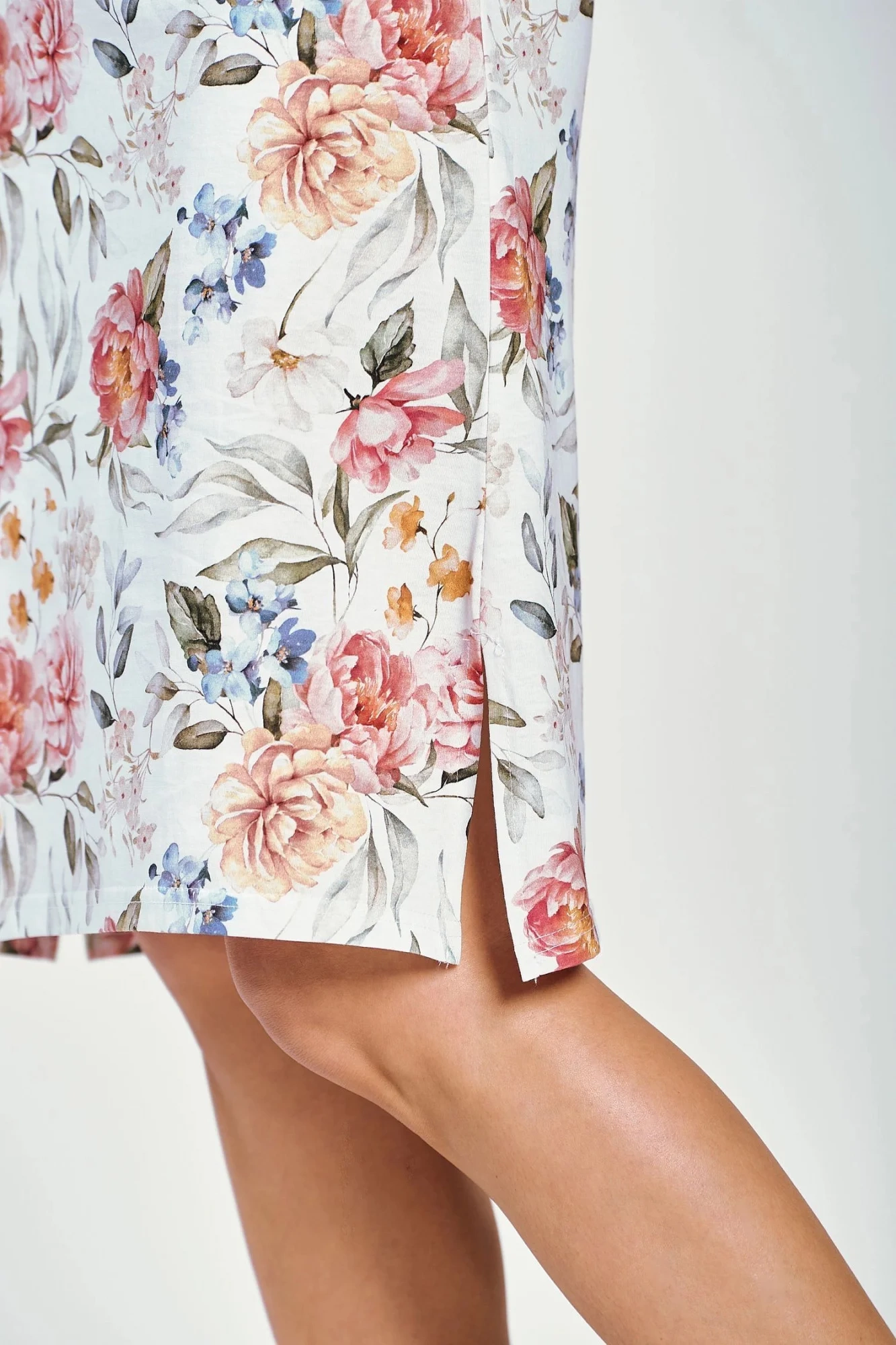 Dámská noční košilka 3248 Louisa TARO - bílá barva - z vysoce jakostní bavlny - se vzorem květů - tříčtvrteční rukávy - s rozparkem