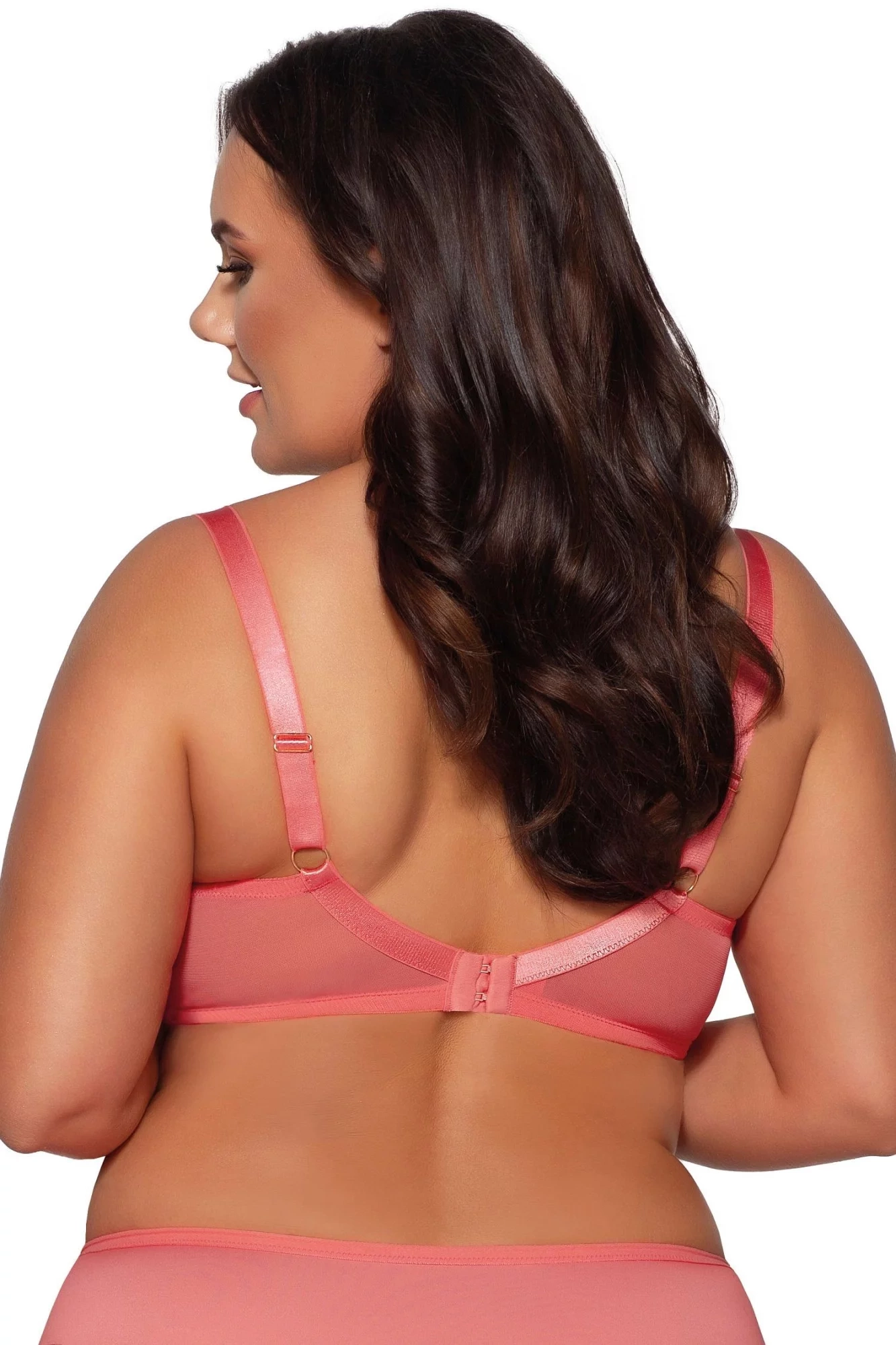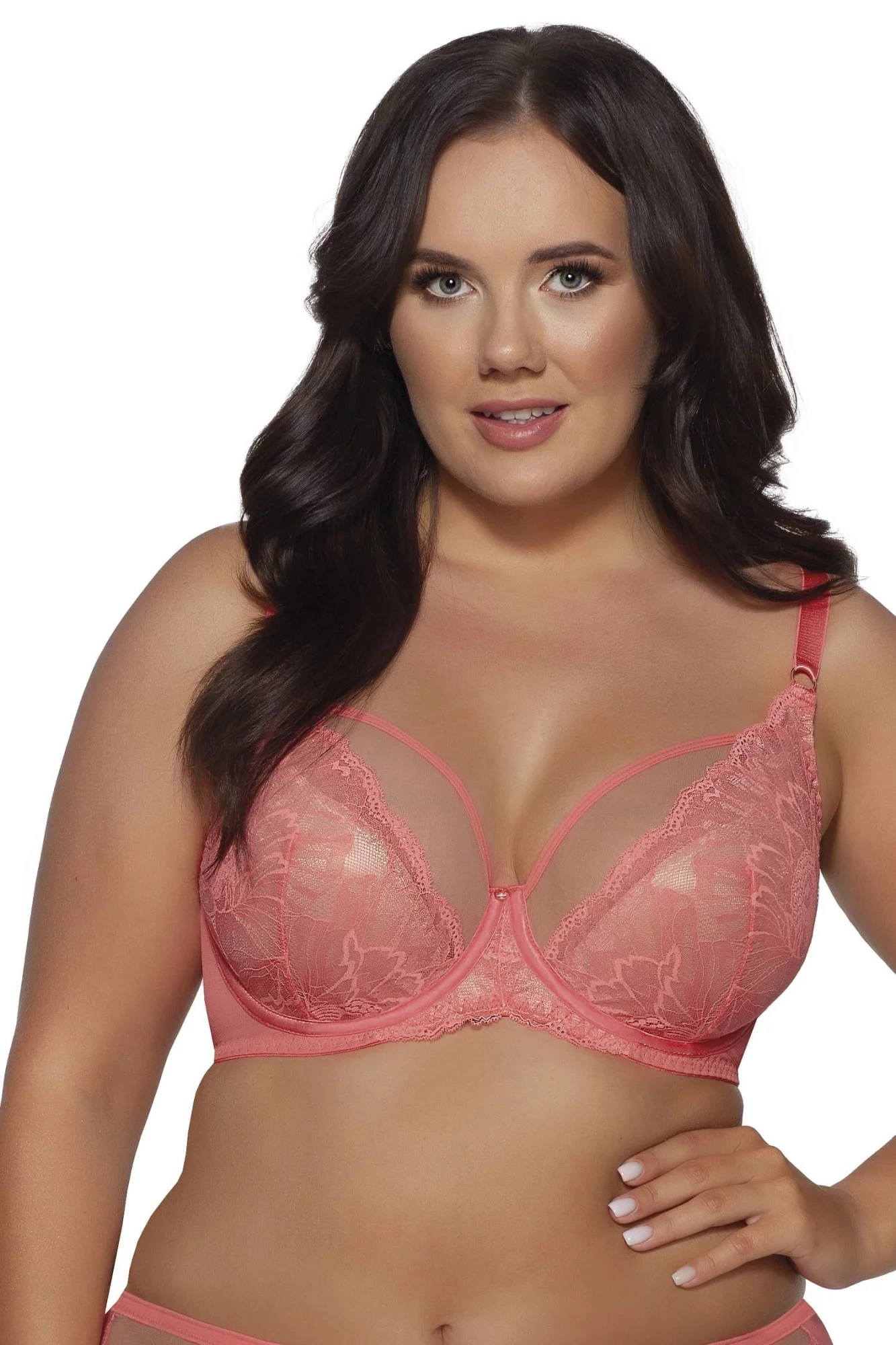 Dámska podprsenka 1824 Venus coral AVA - koralová farba - košíčky z kombinácie jemnej čipky a sieťoviny - medzi košíčkami mašlička s ozdobou - zadná časť a boky sú pružné lycry - ramienka sú nastaviteľné a neodopínateľné - zapínanie na dva alebo tri háčiky podľa veľkosti