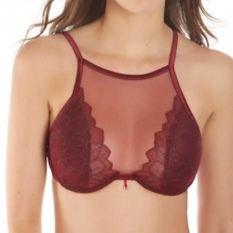 Dámska luxusná tmavo modrá podprsenka rafinovaného strihu. Spodný diel košíčkov je vystužený, s kosticami.