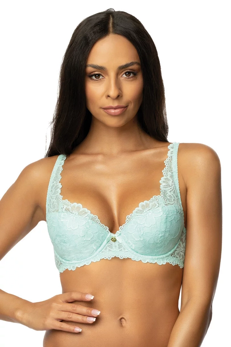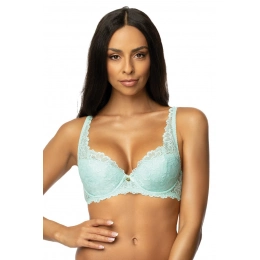 Polomäkká vystužená krajková podprsenka s kvetinovým motívom. Vnútro misy je vyložený bavlnou. Boky vystužené zvislou veľrybou kosťou. Ozdobné, nastaviteľné popruhy, neodnímateľné. Model dokonale nadnáša a podopiera poprsie.