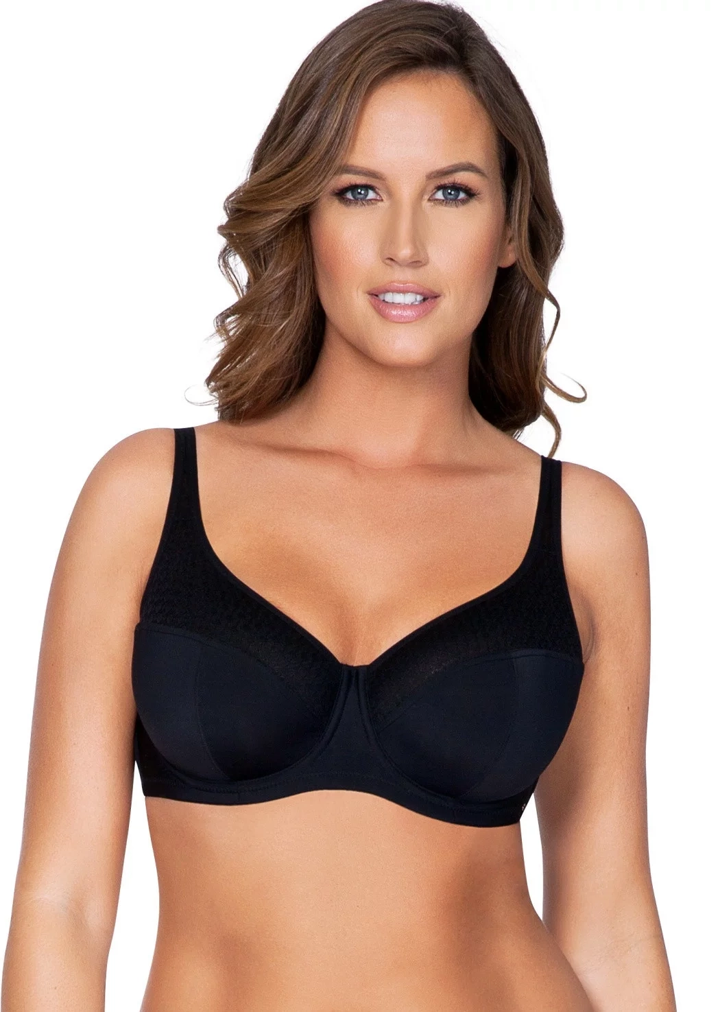 Unlined Wire podprsenka Nevystužená podprsenka s kosticami od americkej značky PARFAIT. Táto podprsenka má košíček strihaný z troch častí, má vysoký stred, pružnú a výborne spracovanú dekoltovú časť a obvod dostatočne pevný a široký, čo sú atribúty, ktoré z nej tvoria veľmi dobre fungujúci celodenný model aj pre naozaj veľké poprsie. Ramienka vychádzajú z dekoltovej časti a za prechodom do chrbtovej časti sa menia na materiál s miernym leskom, sú nastaviteľné a dostatočne široké. Dizajn v čiernej farbe je veľmi decentný a jemný, kombinácia s geometrickou čipkou pôsobí elegantnú ozdobnosť. Materiálové zloženie: 84% Nylon 16% Spandex