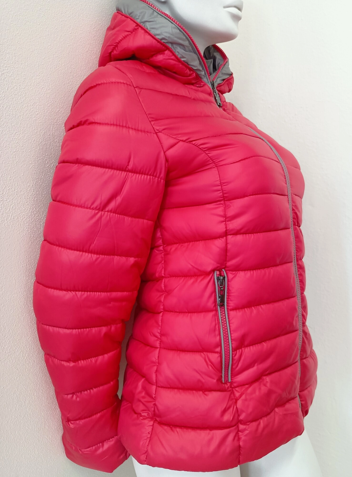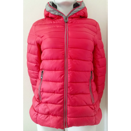 Dámska prešívaná zimná bunda strednej dĺžky, s neodopínacou kapucňou.