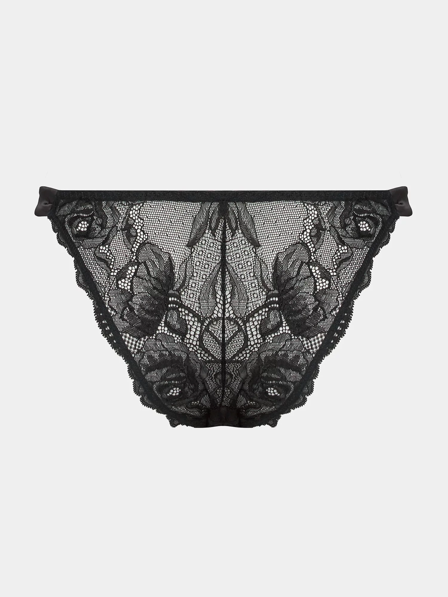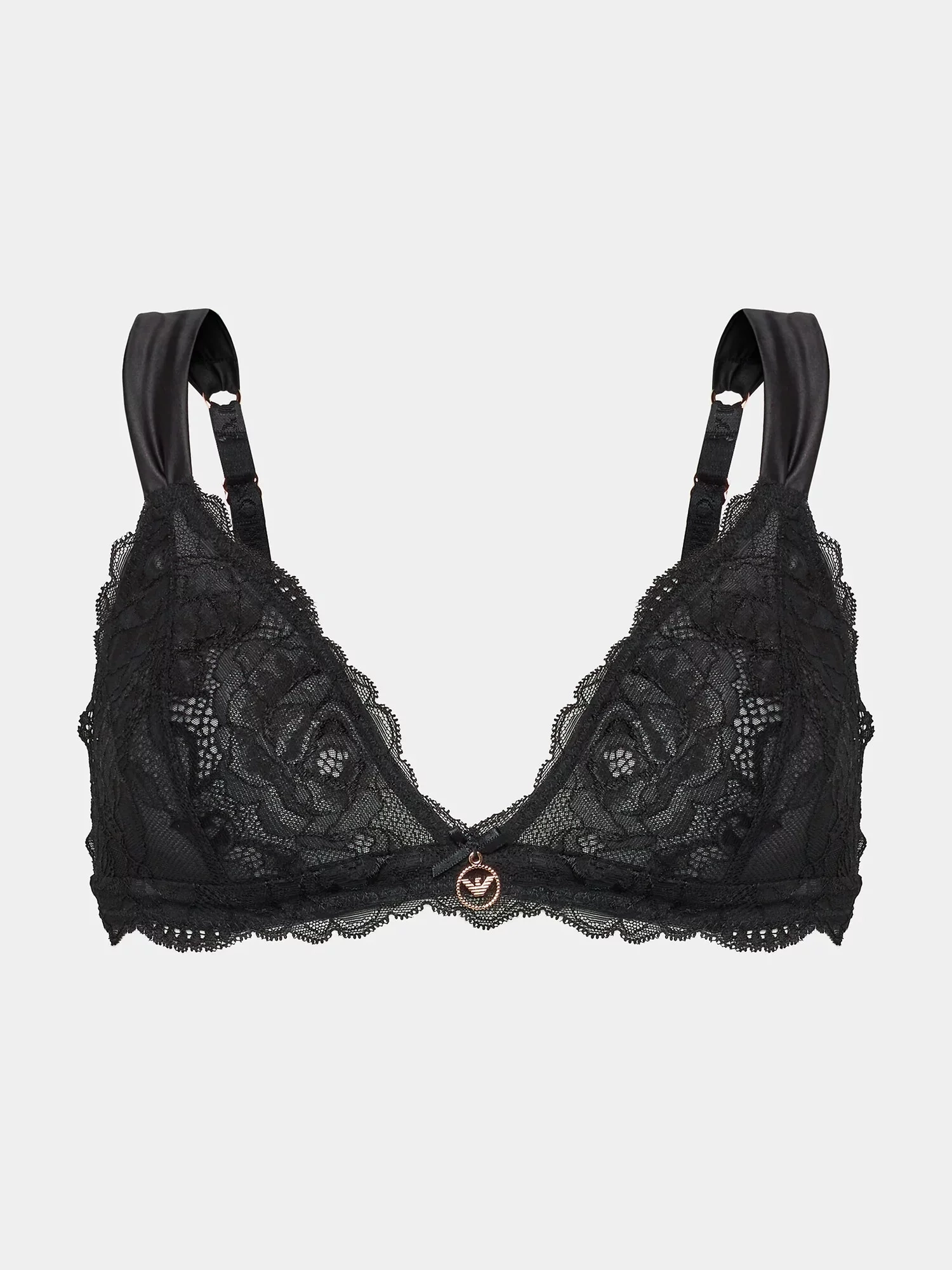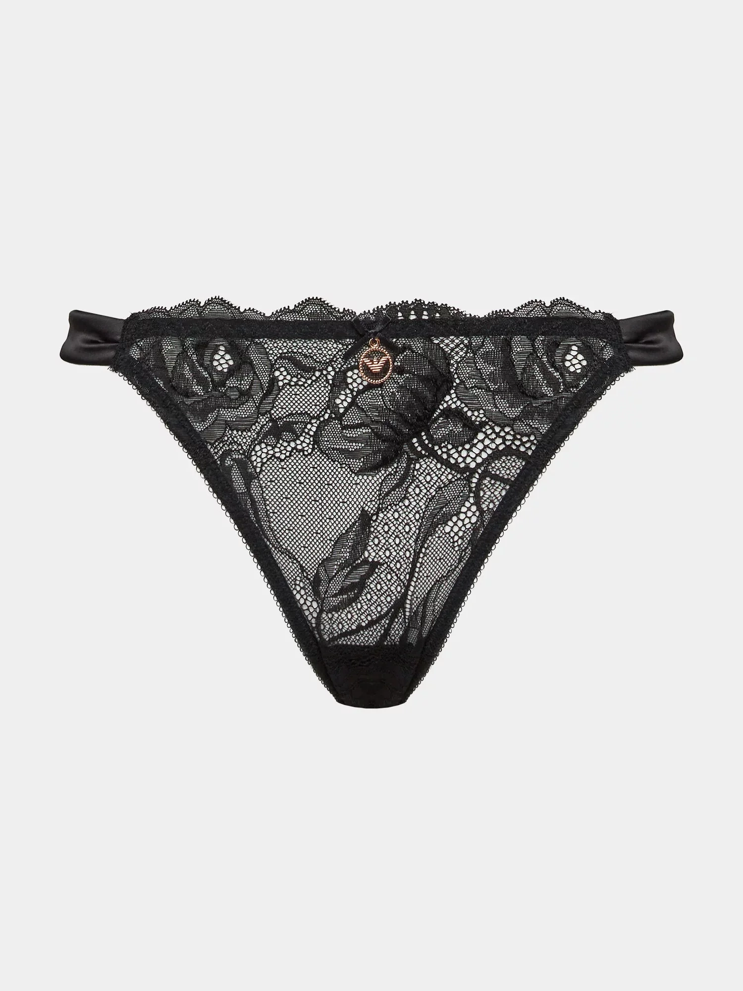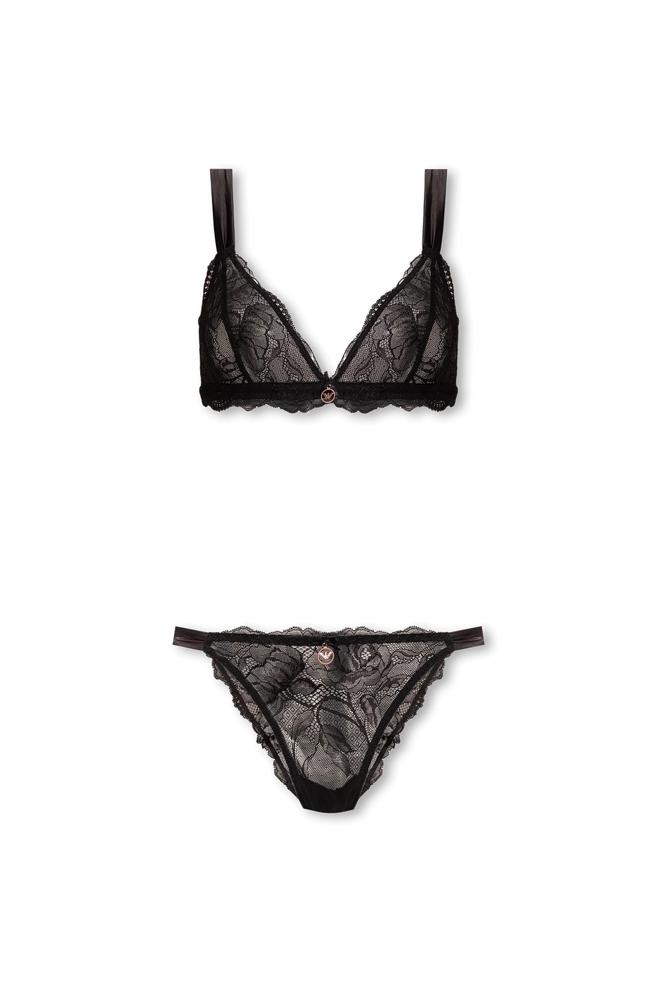 - súprava je vyrobená z čipky so saténovými lemami a zdobí ju detail loga vo farbe ružového zlata