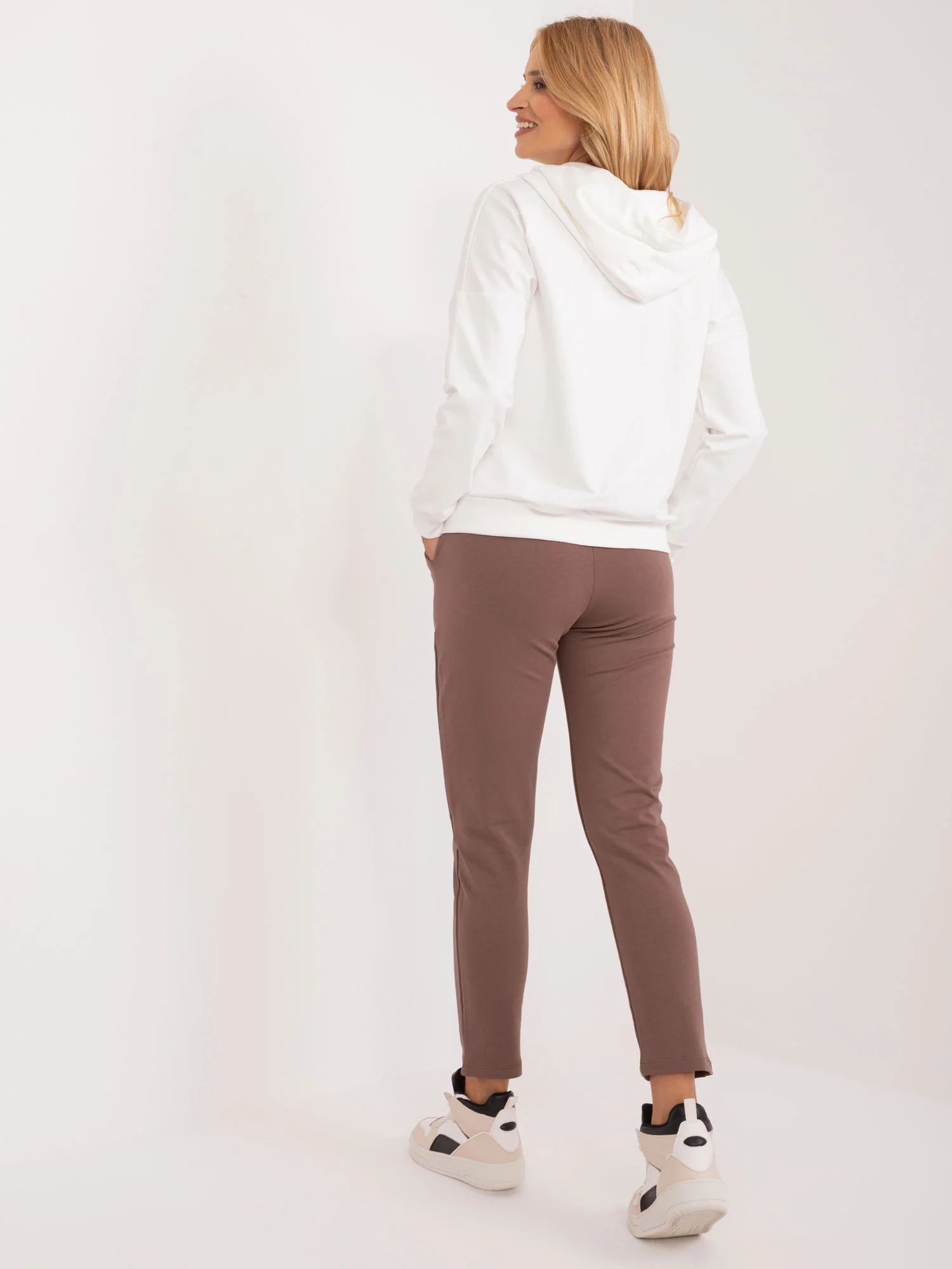 Rozmery súpravy vo veľkosti S/M merané na plocho: šírka blúzky v podpazuší - 62 cm, dĺžka rukávov - 42 cm (od švu), obvod v bokoch - 48 cm, dĺžka blúzky - 59 cm, šírka nohavíc v páse - 35 cm, obvod v bokoch - 45 cm výška stavu.
