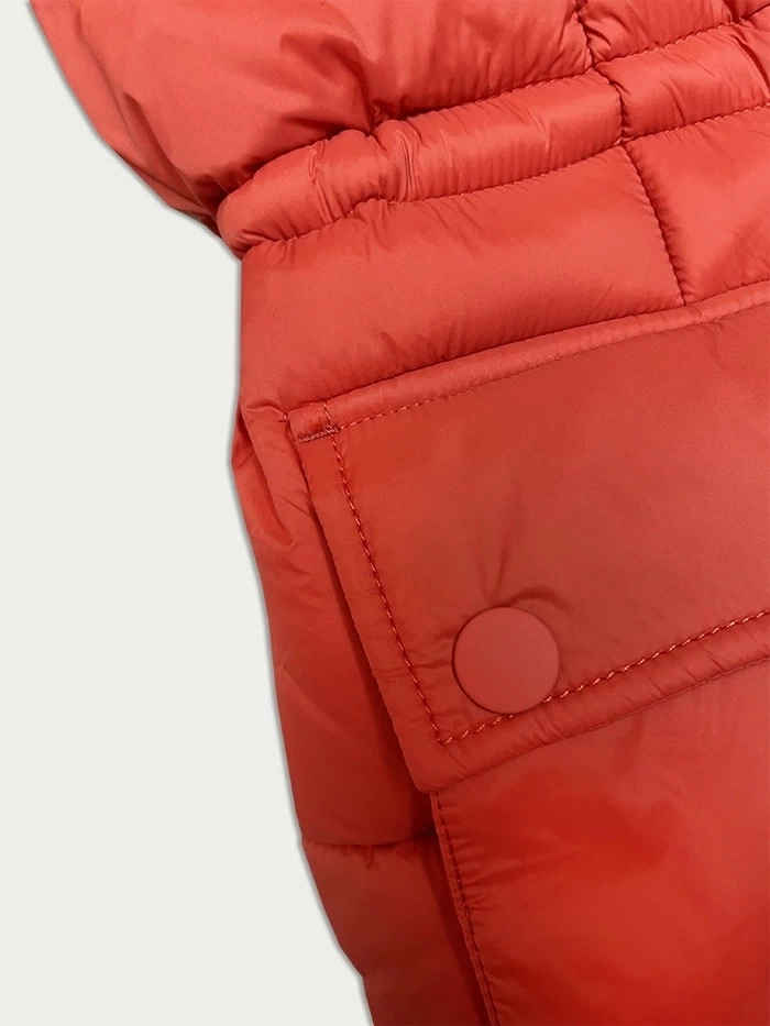 Bunda je zateplená syntetickou páperovou výplňou, má dve vrecká a jedno vnútorné vrecko a zapína so zipsom a panelom s patentkami. Model má stojačik a kapucňu, ktorú je možné odopnúť. Rukávy sú olemované gumami. V páse a na spodnom okraji modelu sú sťahujúce šnúrky. Bunda má dĺžku k bokom.