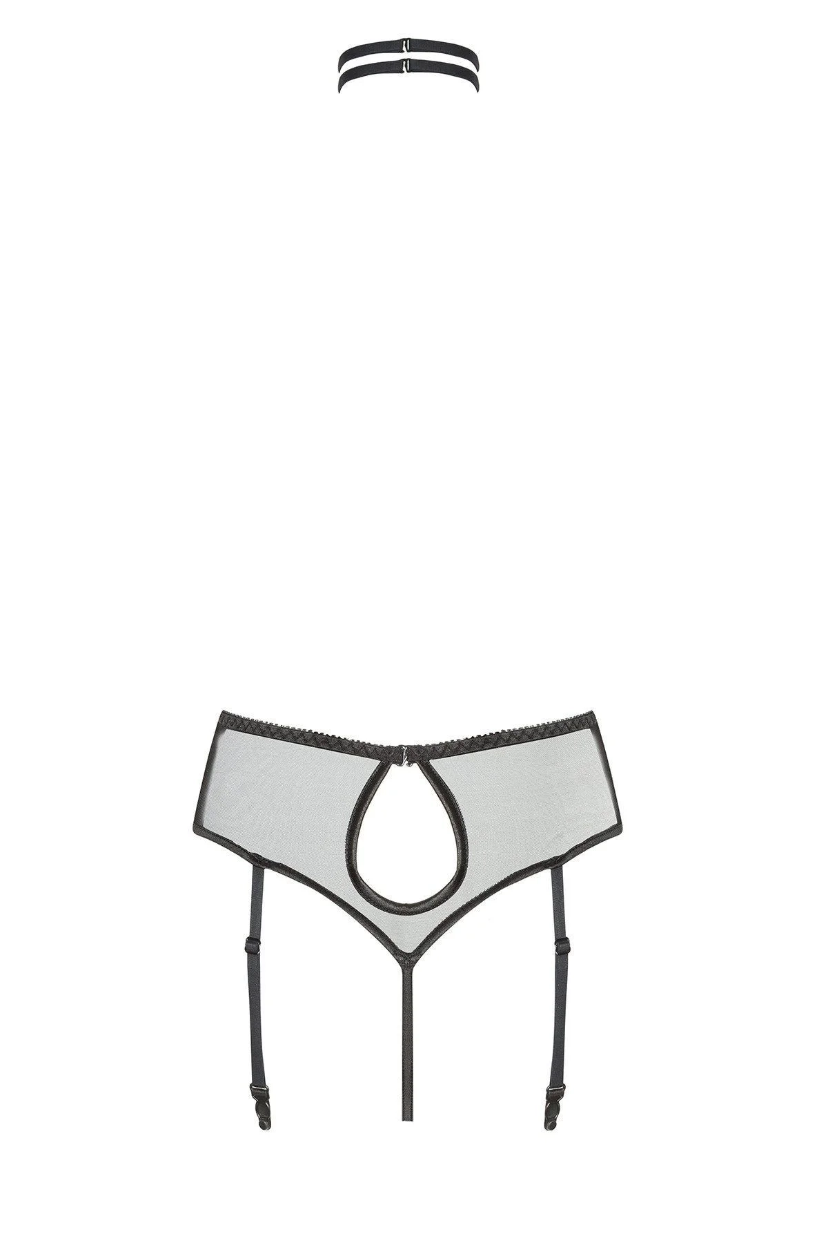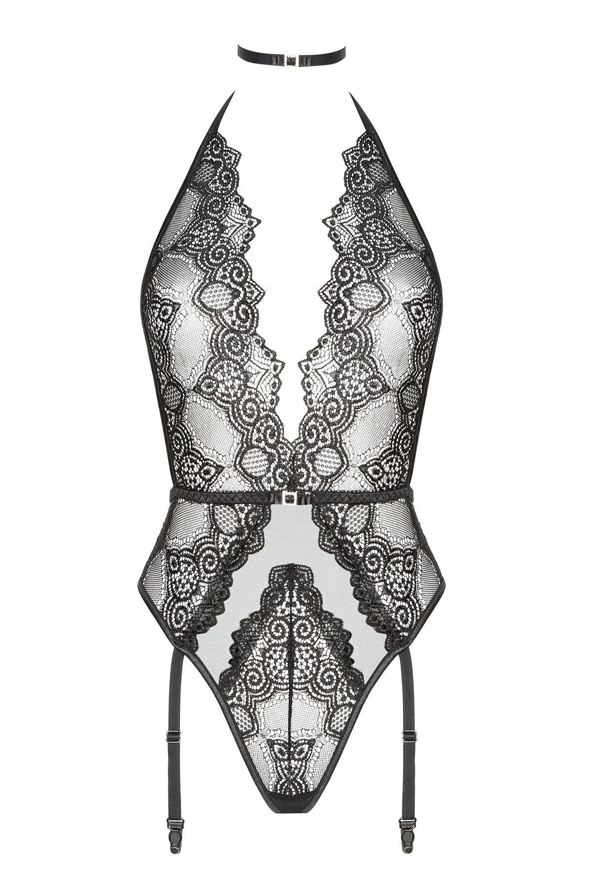 Erotické body Adelaide teddy black BEAUTY NIGHT FASHION - černá barva - hluboký výstřih odhaluje poprsí - imitace pásku v pase - ozdoba kolem krku s lesklou aplikací