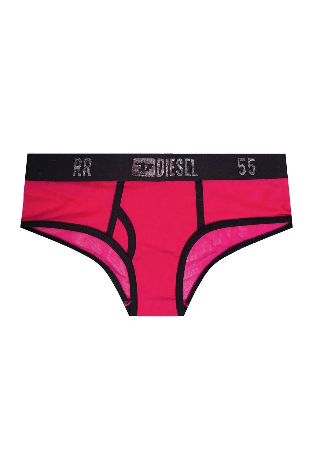 Ružové nohavičky značky Diesel s elastickým pásom vykladaným striebornou a lurexovou priadzou.