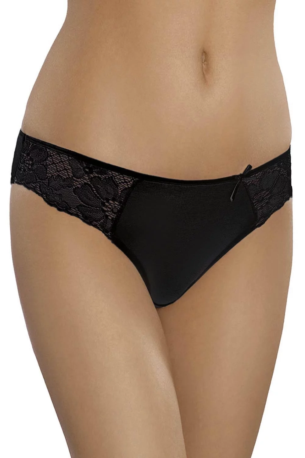 Dámské laserově řezané kalhotky španělské značky Ysabela Mora klasického střihu. V přední části jsou zcela hladké a v zadní části jsou průsvitné, krajkové. Obvod i okraje nohaviček jsou laserově střiženy a nebudou se nevzhledně zařezávat a rýsovat pod přilehlým oblečením. Do vnitřního dílu je zpracován bavlněný klínek pro pohodlné nošení. Materiálové složení: 90% polyamid, 10% elastan.