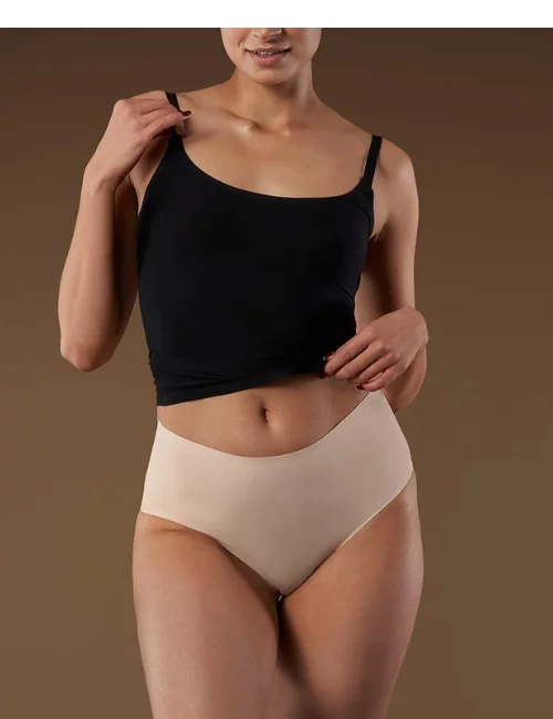 Dámske béžové nohavičky Brasil Maxi od Julimex boli vytvorené pomocou bezšvovej technológie Julimex Invisible Line®. Sú vyrobené z mäkkej a jemnej tkaniny a navyše majú hygienickú bavlnenú vložku na zaistenie maximálneho pohodlia.