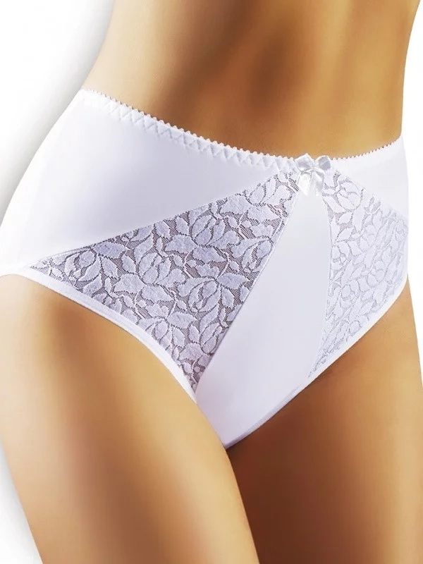 Dámske bavlnené 94% nohavičky Emili Tonia s dodatkom elastanu 6%, vpredu efektné všivky s kvetinovým motívom.