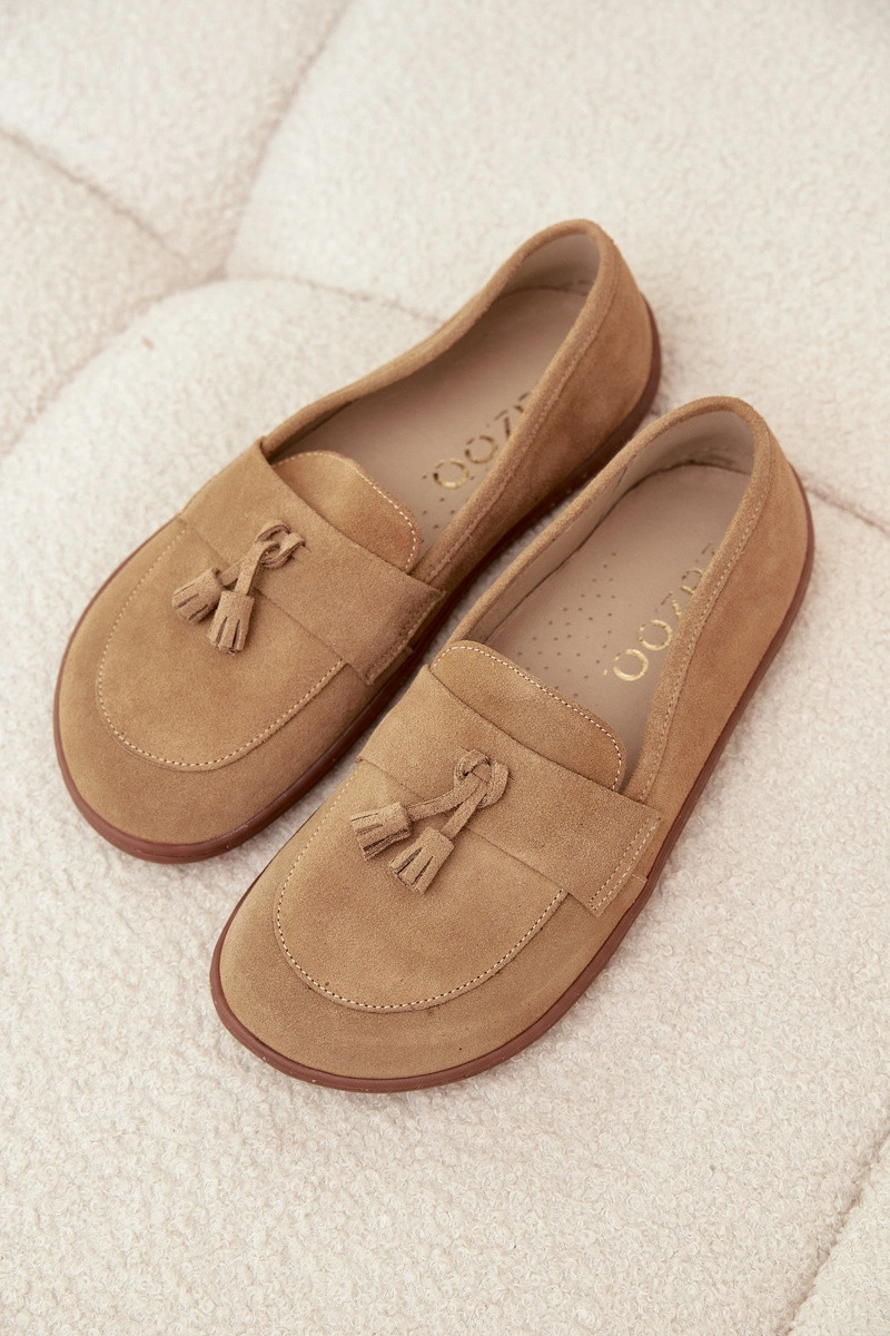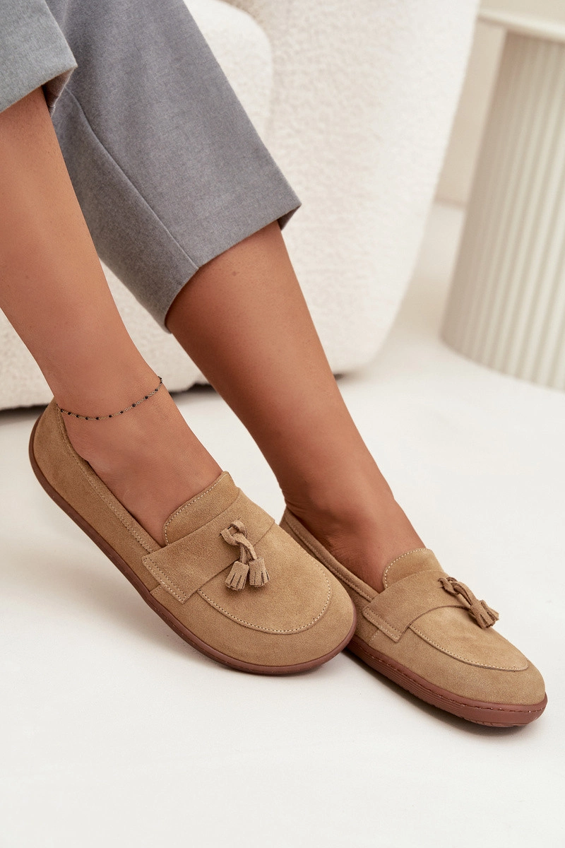 Dámske barefoot mokasíny sú ponuka pre tých, ktorí si cenia prirodzené pohodlie a voľnosť pohybu. Vyrobené z mäkkej prírodnej kože, dokonale sa prispôsobia tvaru nohy a poskytujú príjemný pocit ľahkosti a pohodlia pri nosení. Na prednej strane je obuv ozdobená opaskom s dvoma strapcami, ktoré dodávajú celku jemný šarm a štýlový charakter. Sú ideálne na každodenné nosenie – hodia sa ako k voľným, casual štýlom, tak aj k elegantnejším kombináciám. Pri výbere veľkosti sa prosím riaďte tabuľkou veľkostí.