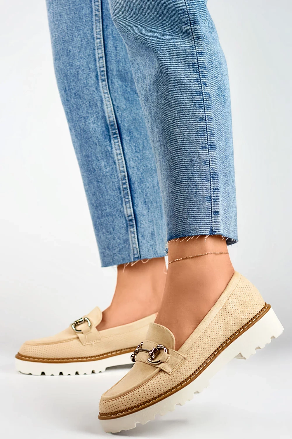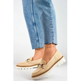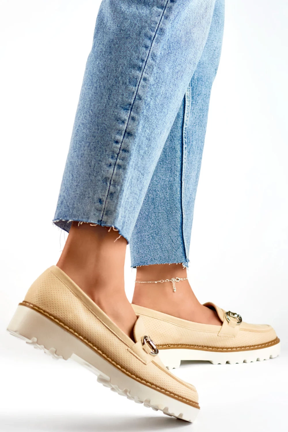 Poltopánka v jemnom béžovom odtieni je sofistikovaná obuv kombinujúca pohodlie s eleganciou, vytvorená pre moderné ženy, ktoré ocenia pohodlie aj štýl. Zvršok z eko semišu dodáva obuvi mäkkosť a jemnú štruktúru a zároveň sa stará o životné prostredie. Pre ženy sú tieto béžové poltopánky ideálne na jar a leto, ale vďaka svojmu nadčasovému dizajnu ich možno nosiť po celý rok a poskytujú univerzálny doplnok k rôznym outfitom. Stielka z ekologickej kože poskytuje pohodlie a zároveň sa prispôsobí tvaru chodidla. Tieto poltopánky majú stabilný podpätok s dĺžkou 3,5 cm, ktorý im dodáva eleganciu a zároveň zostáva pohodlným riešením na každodenné nosenie. Vďaka nazúvaciemu prevedeniu sa ľahko nosí, čo z nich robí praktickú voľbu pre rôzne príležitosti. Guľatá špička dodáva topánkam klasický pôvab, zatiaľ čo béžovo sfarbený eko koža ich robí ľahkými a mäkkými. Tieto béžové poltopánky sú jedinečnou kombináciou štýlu, pohodlia a starostlivosti o životné prostredie.
