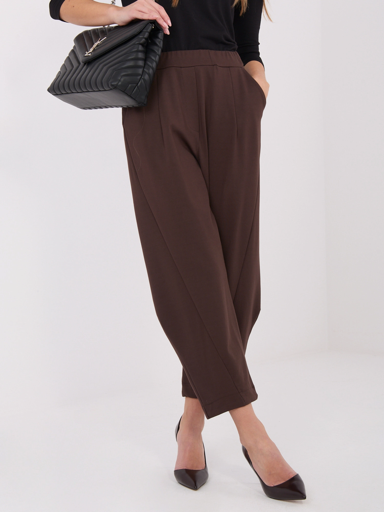 Rozmery nohavíc vo veľkosti S: šírka v páse - 32 cm (na plocho), šírka v páse - 55 cm (po natiahnutí), šírka v bokoch - 54 cm, výška v páse - 33 cm, celková dĺžka - 91 cm.