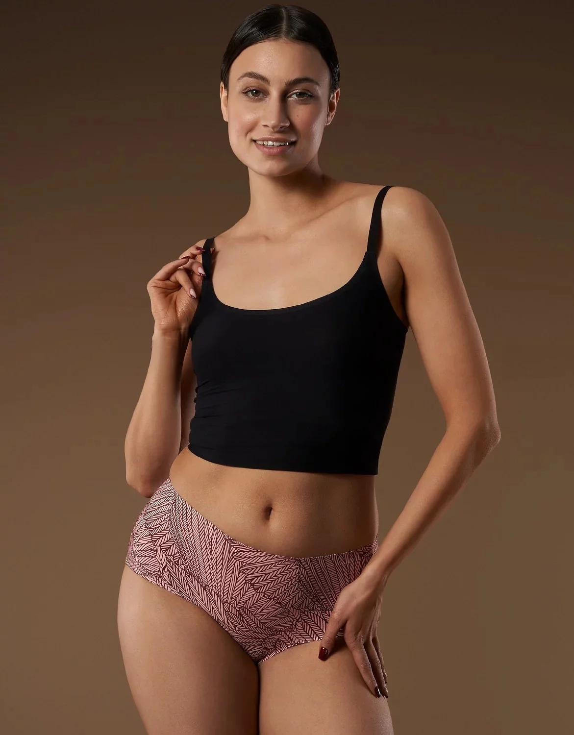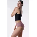 Secretia - kalhotky s vysokým modelem z hladšího úpletu. Model, který diskrétně koriguje linii břicha, pasu a boků. Díky vysokému obsahu bavlny a elastanu je prádlo velmi pohodlné a příjemné na nošení. Vyztužený panel v pase, který drží břišní svaly. Složení: 30 % mikromodal, 40 % elastan, 30 % bavlna.