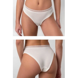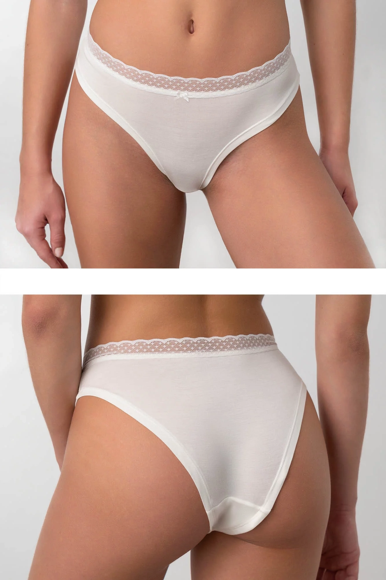 Pohodlné jednofarebné dámske nohavičky s čipkou, ktoré sú vyrobené z vysoko kvalitného Micro-modalu s prímesou Elastanu. Prírodný Micro-modal poskytuje výnimočnú mäkkosť, ľahkosť a pohodlie, je priedušný, pri praní sa nezráža, dobre absorbuje pot a rýchlo schne, zatiaľ čo Elastan dodáva odevu potrebnú pružnosť.