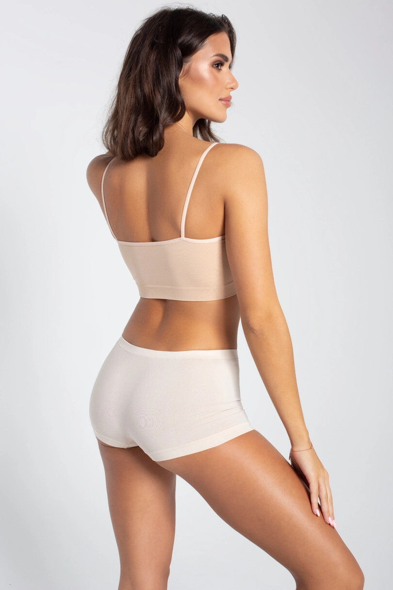Bezšvové dámske nohavičky - šortky, ktoré sú vyrobené z jemnej a priedušnej bavlny. Nohavičky majú ploché okraje. Model pri nosení netlačí a nerysuje sa pod oblečením. Pás je olemovaný jemným sťahovacím lemom. Nohavičky sa ideálne prispôsobujú telu, sú vypasované a pri nosení veľmi pohodlné.