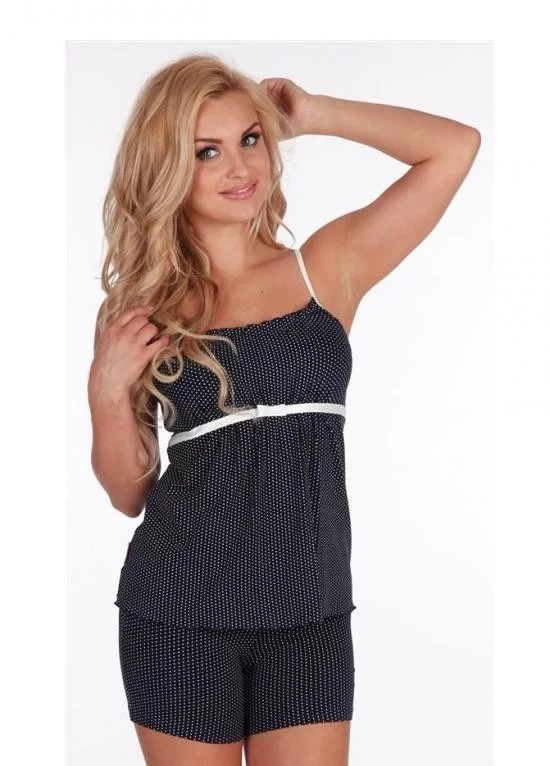 Dámske pyžamo na ramienkach, s krátkymi šortkami. Ušité z 94% viskozy a 6% elastanu.