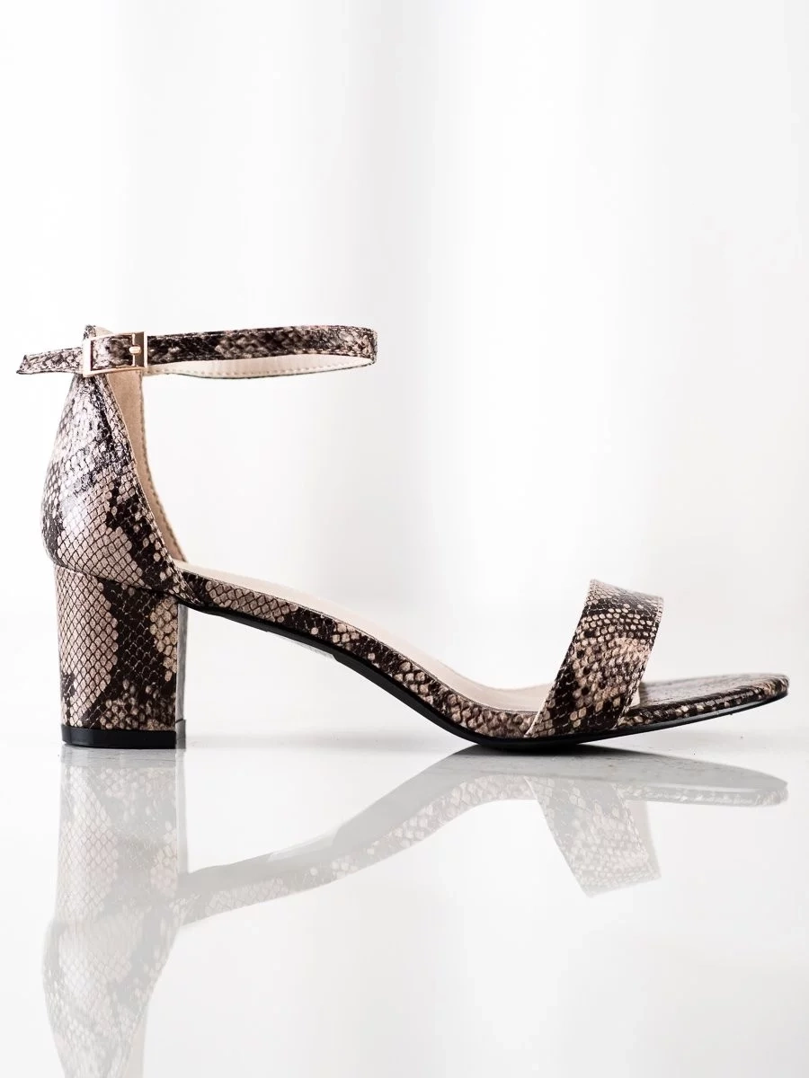VEĽKOSŤ DĹŽKA STIEĽKY 35 22,5 cm 36 23,5 cm 37 24 cm 38 24,5 cm 39 25 cm 40 26 cm 41 26,5 cm *táto tabuľka predstavuje približné hodnoty Vzor – zvieracia, Štýl – casual, Sezóna leto, Vložka – koža prírodná, Podpätok – 5,5cm, Typ – dámske, Typ špice – otvorená, Stav – novinka, Výška podpätku – 5cm - 8cm, Podrážka – hladká, Druh podpätku – stĺpikový, Príležitosť – na večer / párty, Typ zapínanie – spona, Zápätie – otvorené, Material – ekologická koža