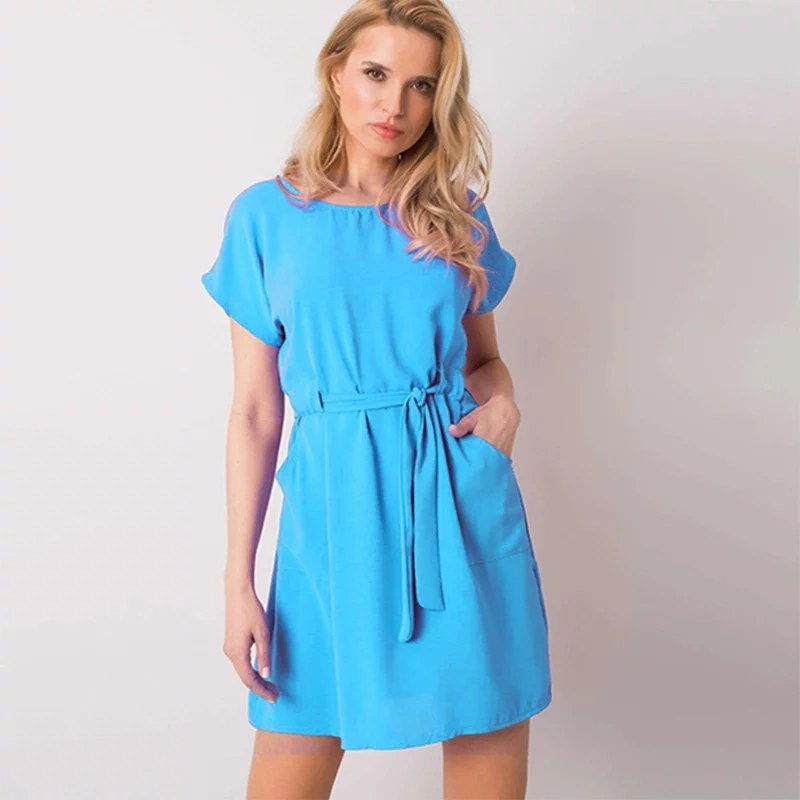 Dámske šaty s opaskom S336 Kráľovská modrá - Stylove