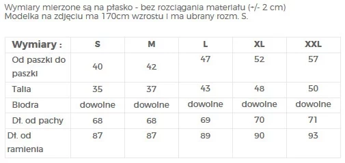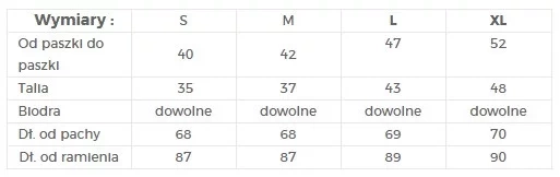 | Dĺžka od podpazušia | 68 | 68 | 69 | 70 | 71 |
