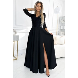 Dlhé maxi šaty Amber s čipkou v čiernej farbe