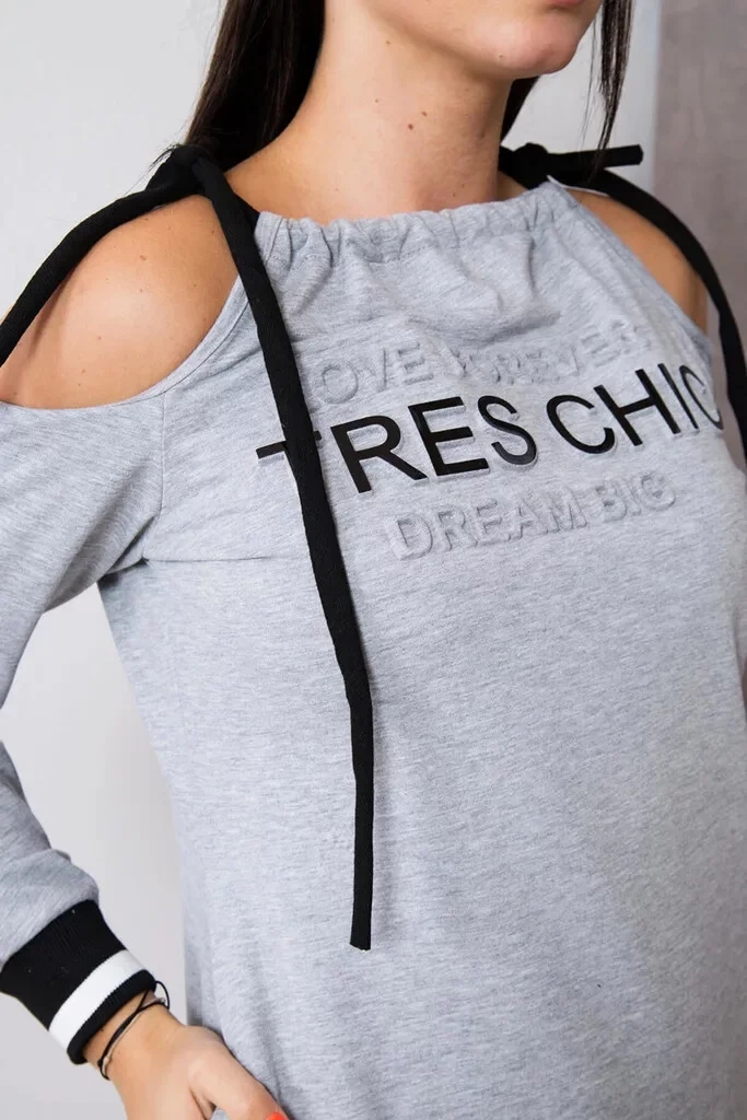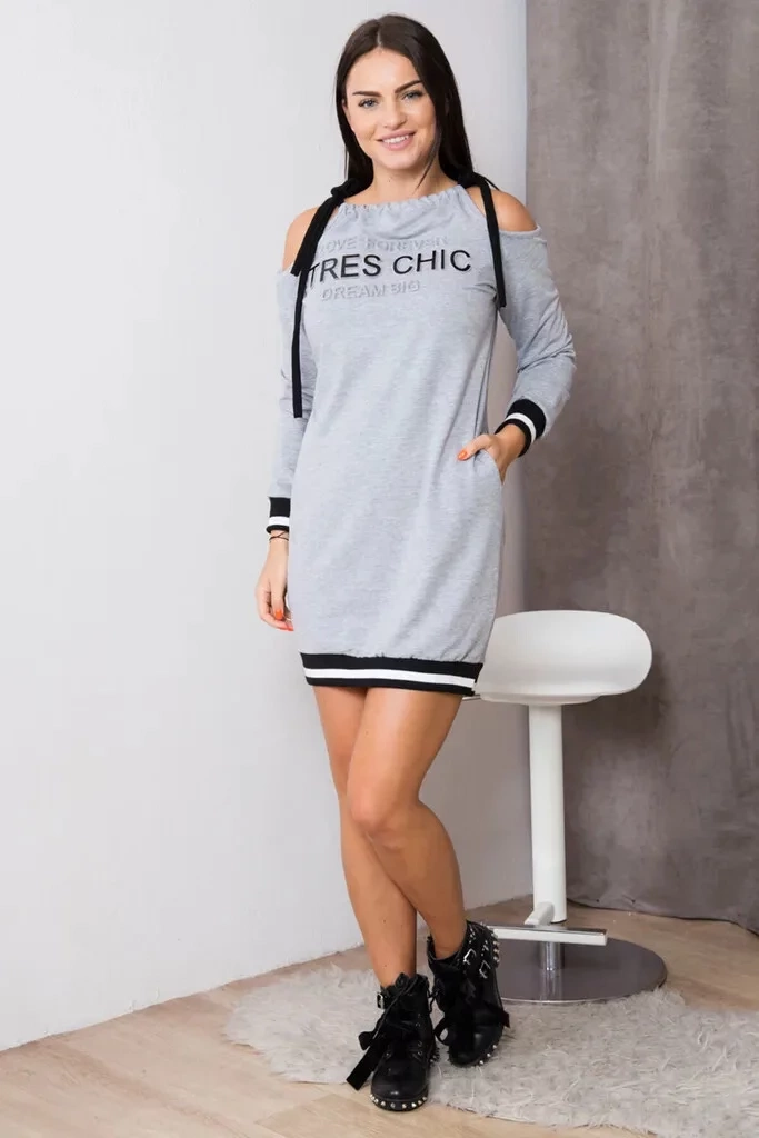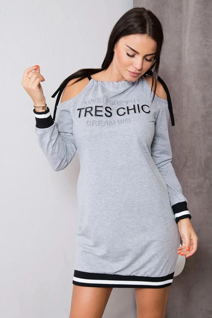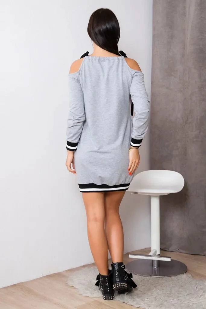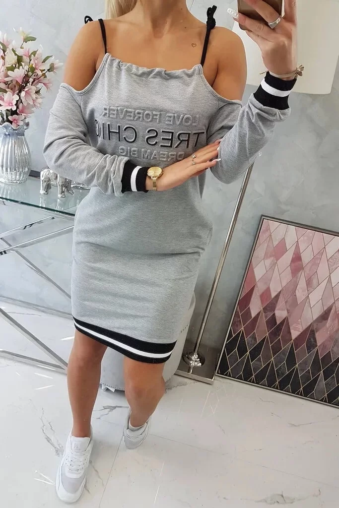 Dámske voľnočasové šaty s plastickými nápismi, s odhalenými ramenami a so zaväzovaním na šnúrky. Vhodné pre veľ. S, M a L.