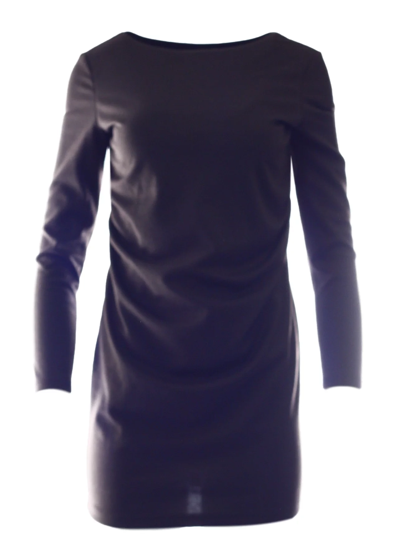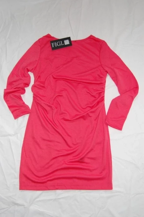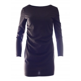 Priliehavé šaty s dlhými rukávmi ukončenými na úrovni kolien, s polguľatým výstrihom a rázporkom na