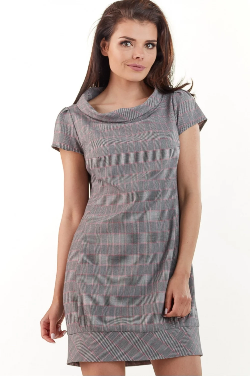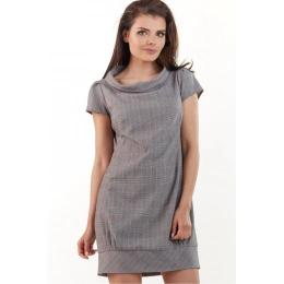 Zaujímavé šaty z kockovanej látky. Šaty s ozdobným decentným golierom. V spodnej časti je zakončená jemným lemom. Šaty majú krátke rukávy.