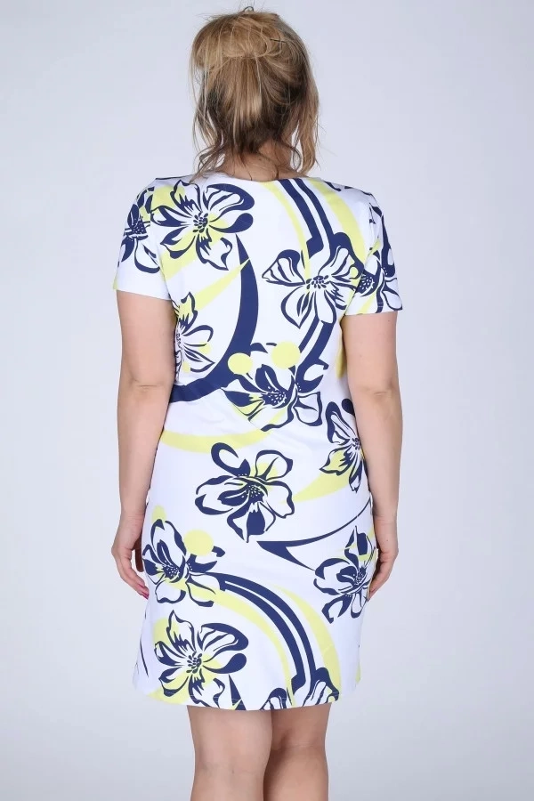 Dámske šaty pre plnoštíhle.Nádherné šaty v krásnych farbách. Tento model šiat má krátky rukávy a okrúhly výstrih. Dĺžka šiat je nad kolená. Tento model si môžete obliecť na letnú párty, oslavy či len tak do mesta.