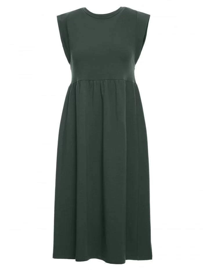 Veľmi pohodlné pletené midi šaty s vysokým pásom a voľnou sukňou opticky zužujú pás a vďaka rovnému strihu navyše zoštíhľujú celú postavu. Tieto krásne šaty majú charakteristické, veľmi krátke rukávy a vstavaný výstrih. Ideálne pre každodenný aj formálny styling. INFORMÁCIE O PRODUKTE: pletenina midi šaty bez rukávov vysoký pás dĺžka pod kolená naša modelka meria 171 cm a nosí veľkosť S