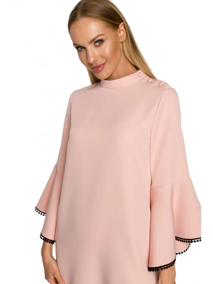 Všetci vieme, že šaty v tvare lichobežníka alebo áčkové šaty môžu lichotiť každému typu postavy. Pridaním efektných anjelských rukávov zakončených ozdobným lemom sme tieto šaty urobili ešte dokonalejšími. Môže byť niečo lepšie ako toto? INFORMÁCIE O PRODUKTE: tkaná látka pravidelný strih áčkové šaty pretiahnuté cez hlavu anjelské rukávy zakončené ozdobným lemom stojačik zapínanie na gombíky na ramene dĺžka nad kolená bez podšívky naša modelka meria 171 cm a nosí veľkosť S